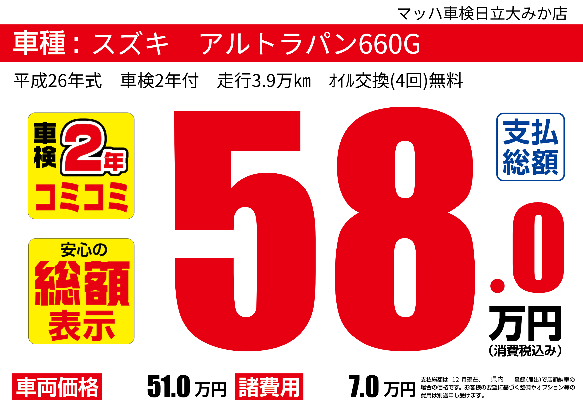 平成26年式 車検2年付 走行3.9万㎞ オイル交換(4回)無料 |
