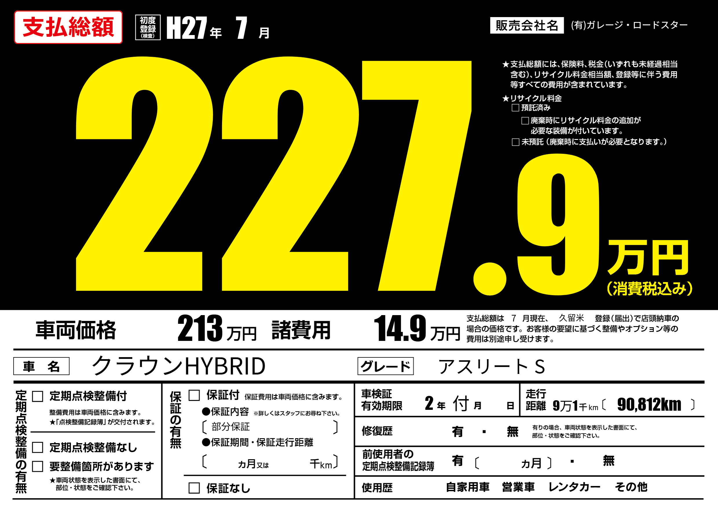 なし | 車検制限 | 2年付月---月 |
