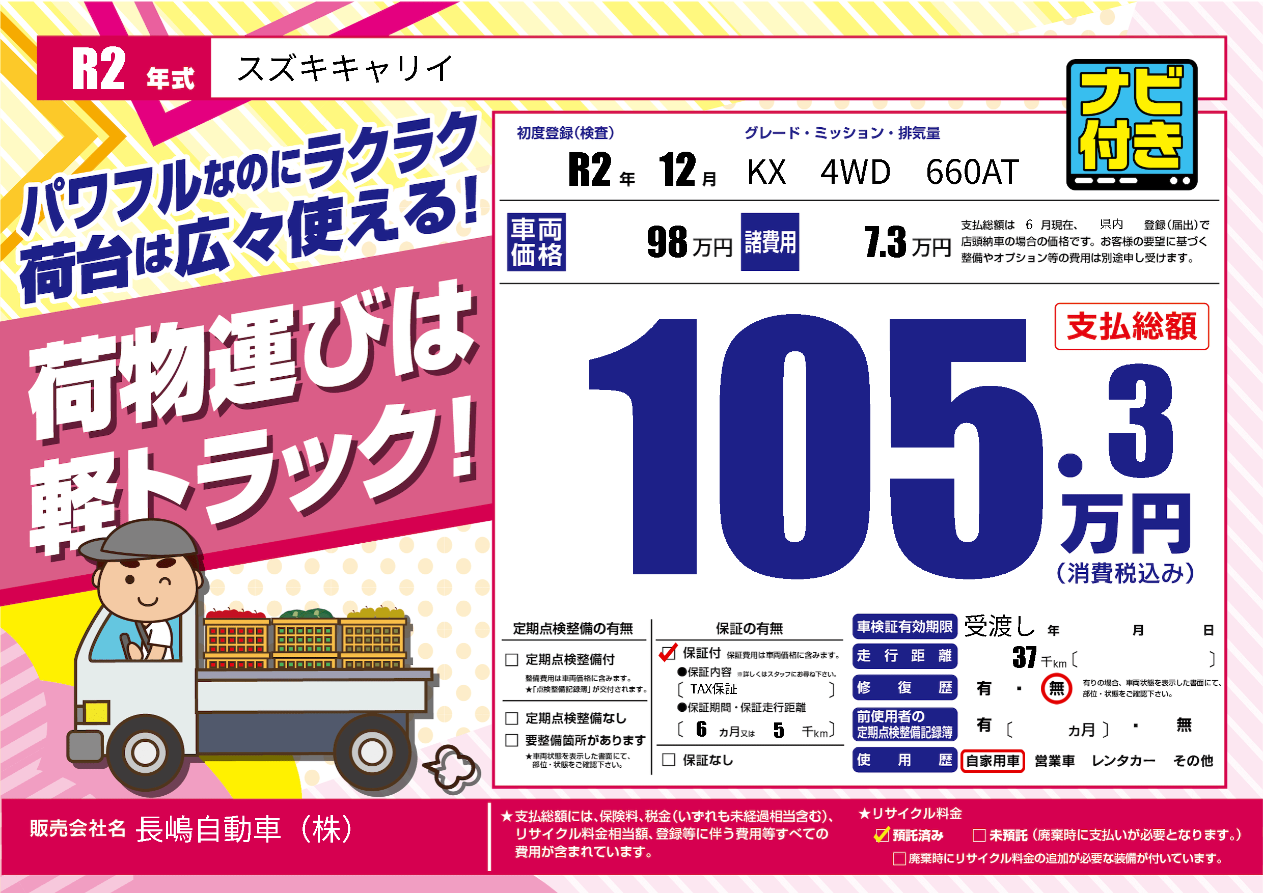 保証付き 保証内容(TAX保証) 6ヶ月または(5)千kmまで |