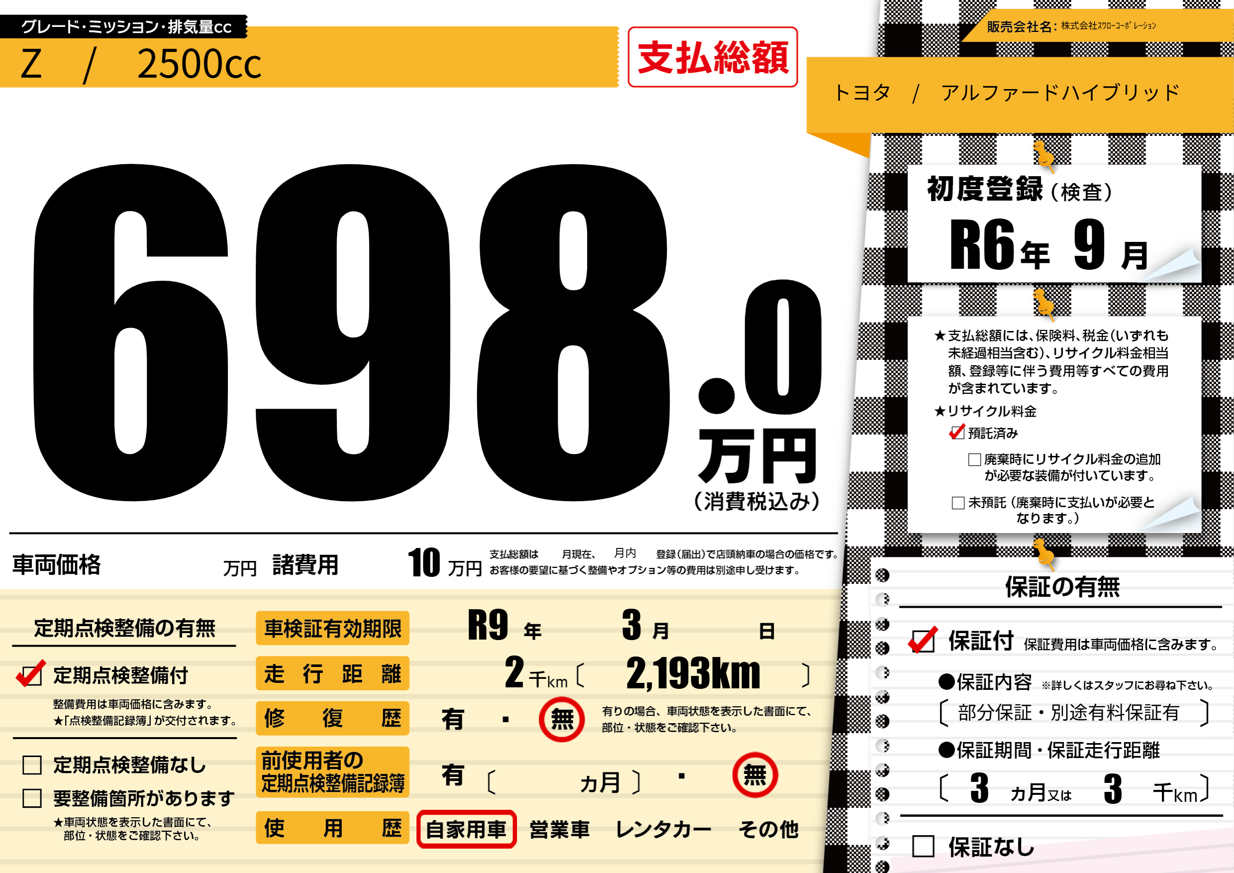なし | 車検制限 | R9 年3月---月 |