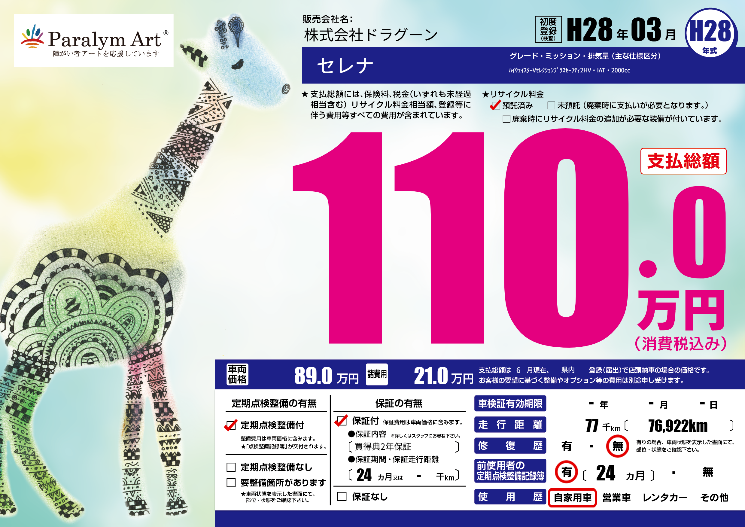 | 車名 | セレナ | グレード ミッション 排気量 |