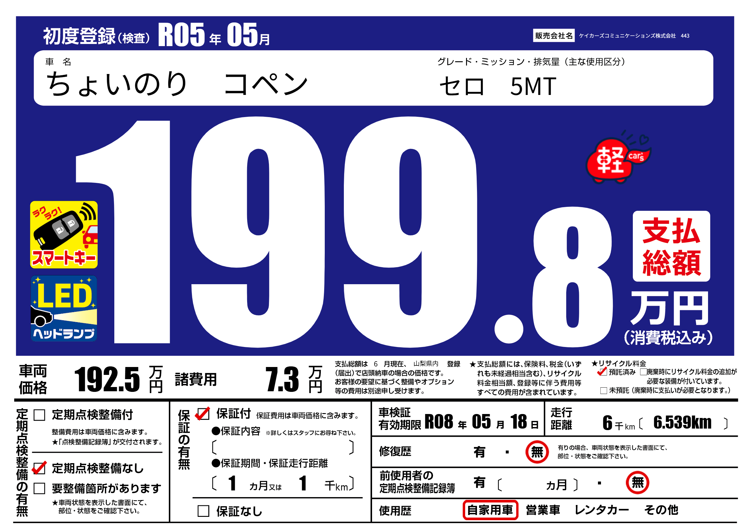 | 車検制限 | R08年 05月 18日 | ||