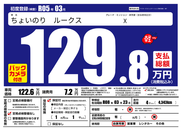 | 初年度登録 | R05年05月 | ||