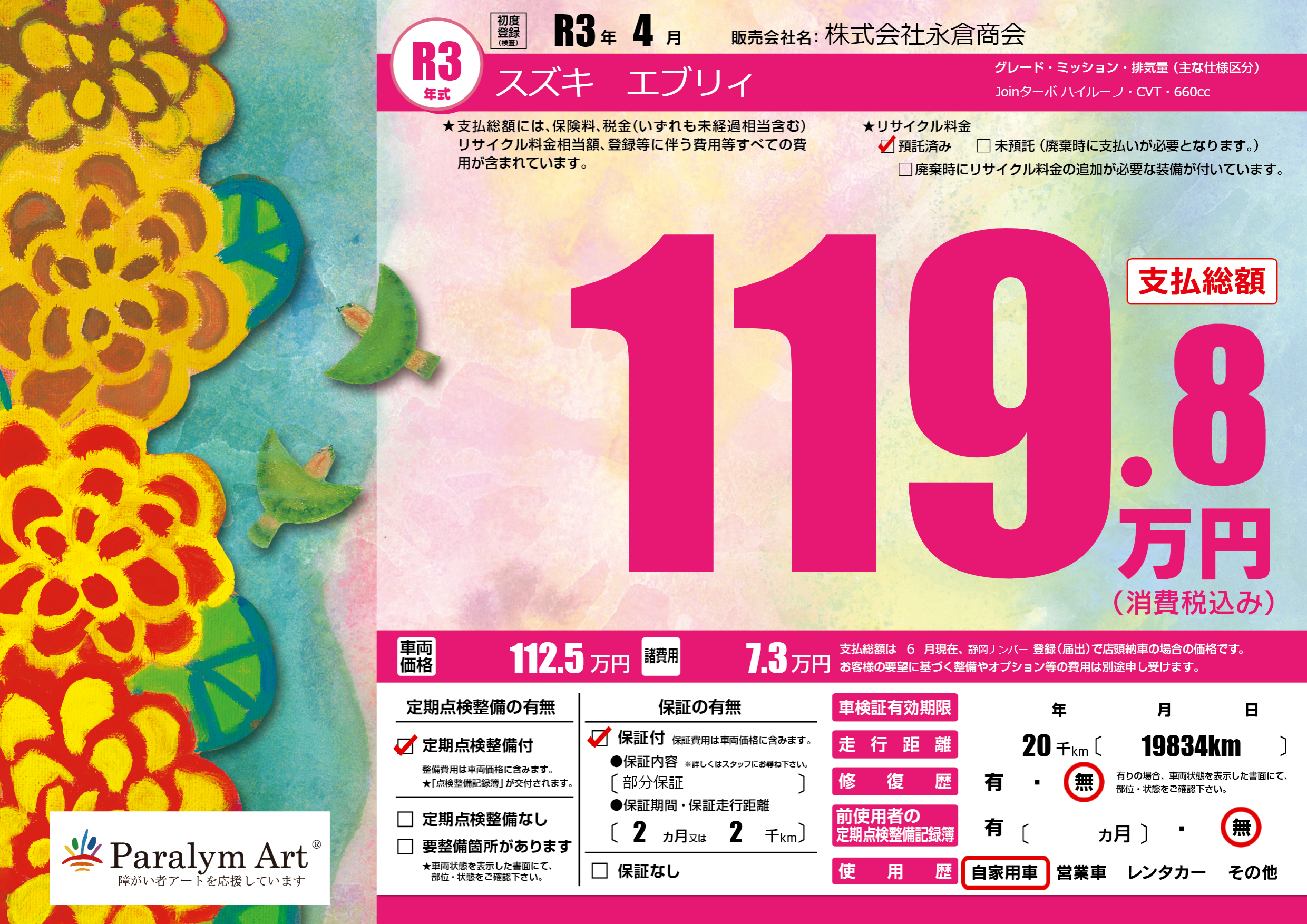 | 車名 | スズキ エブリィ | グレード ミッション 排気量 |