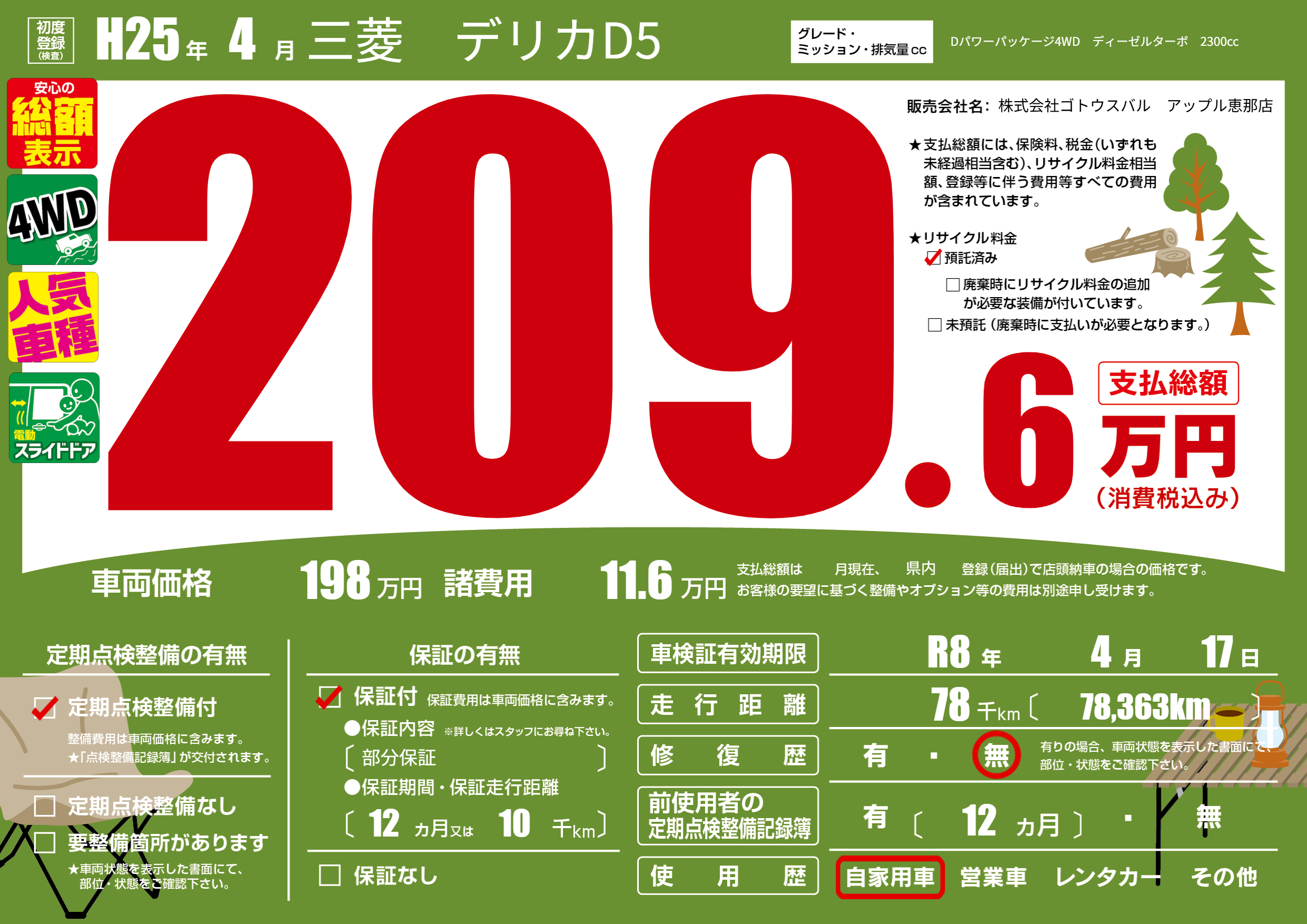 | 車検制限 | R8年 4月 17日 | ||