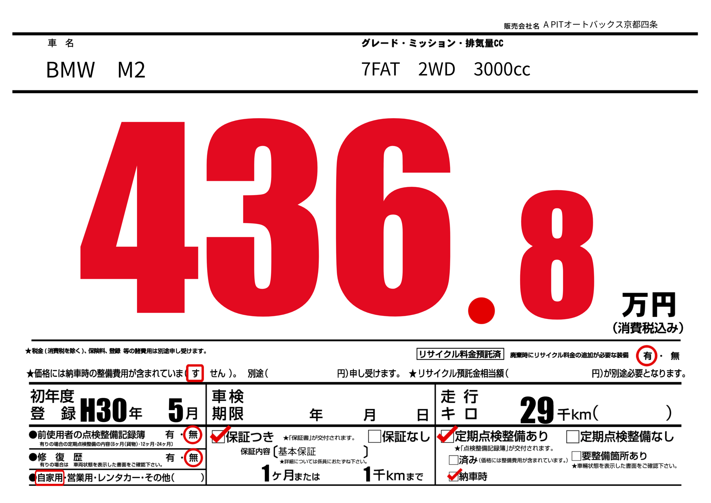 | 定期点検整備 | 定期点検整備あり 納車時あり | ||