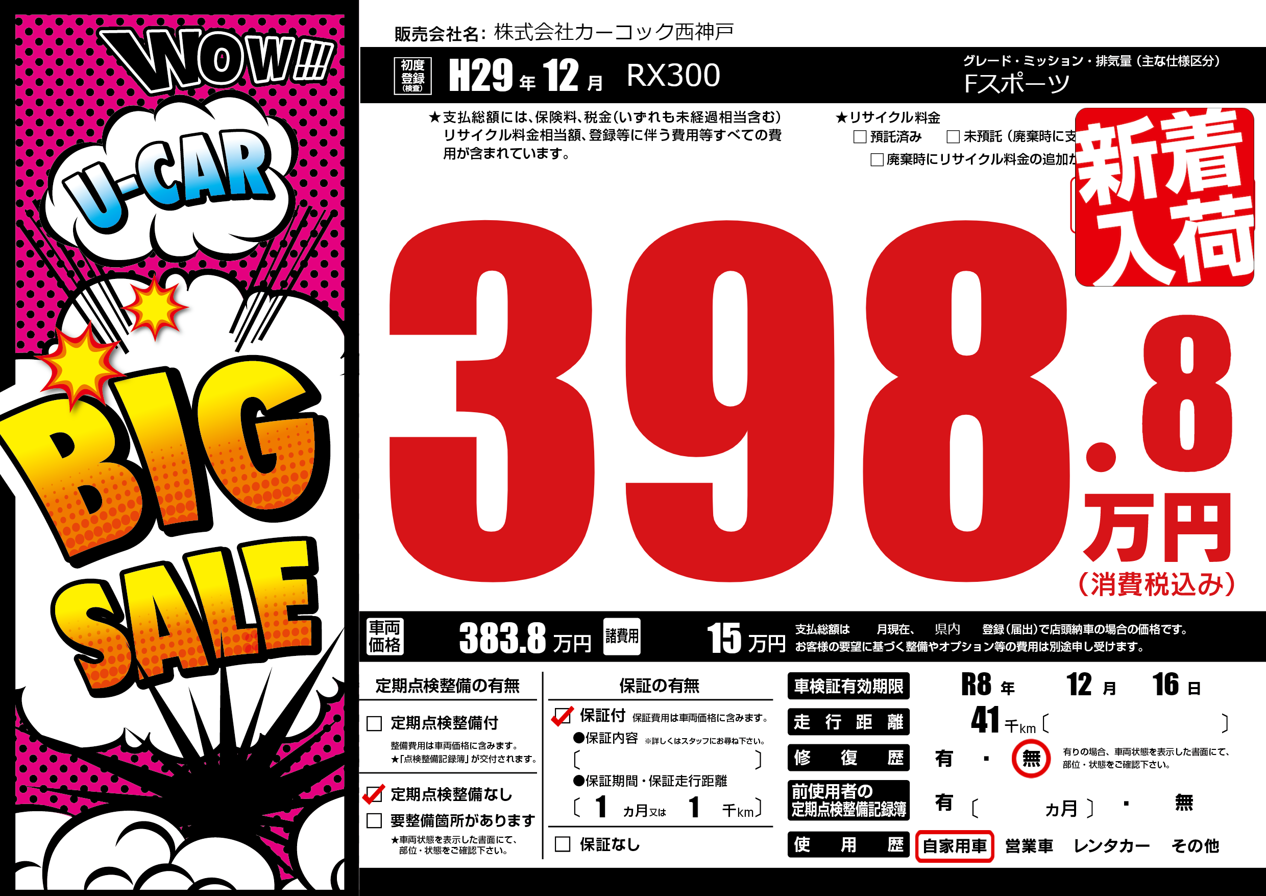 | 車名 | RX300 | グレード ミッション 排気量 |