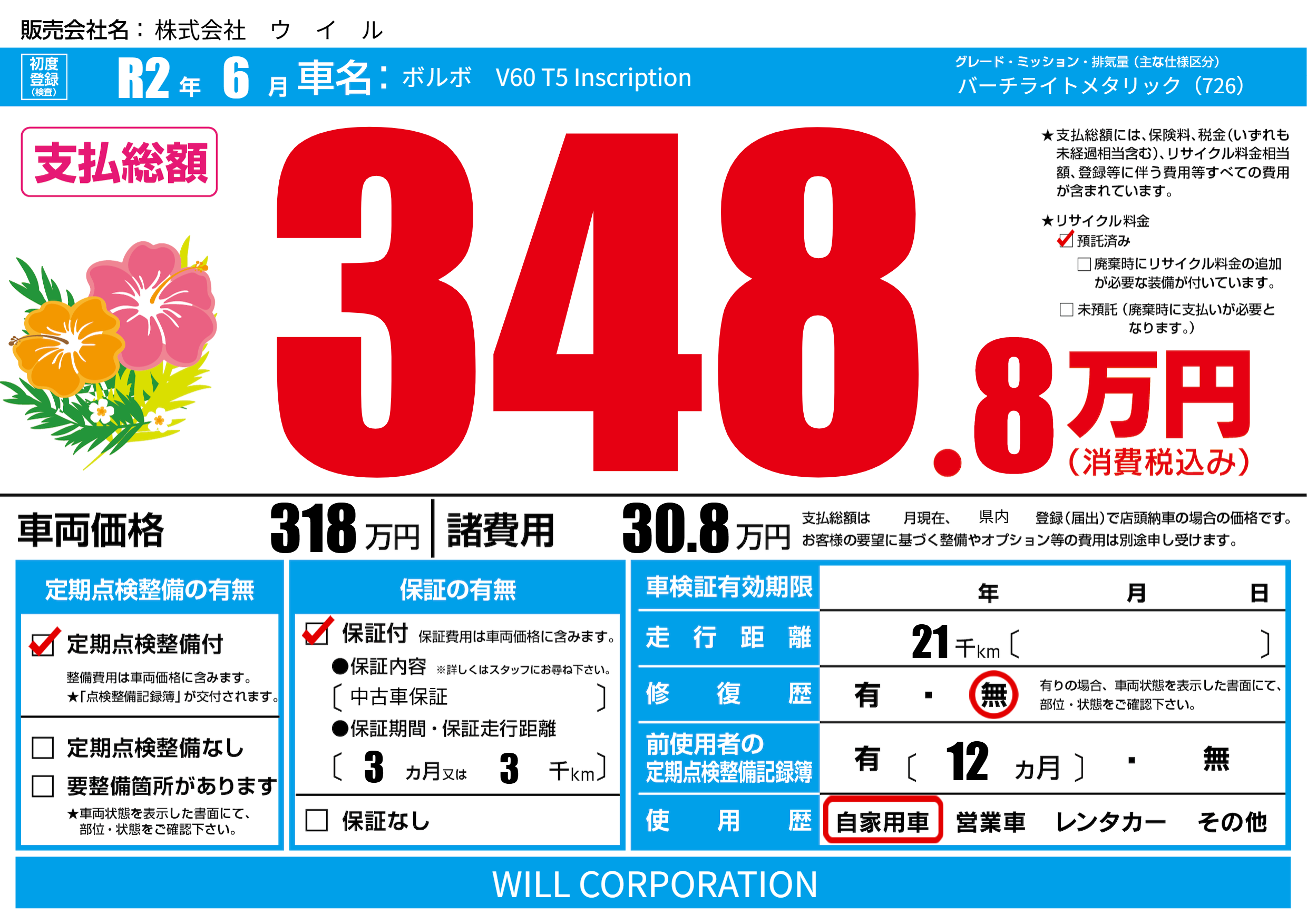 | 走行キロ | 2.1万km | 初年度登録 | R2年6月 |