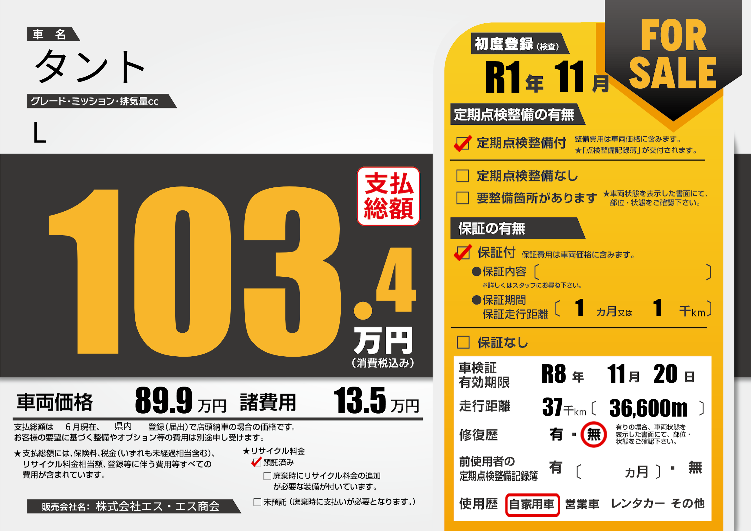 なし | 車検制限 | R8年11月20月 |