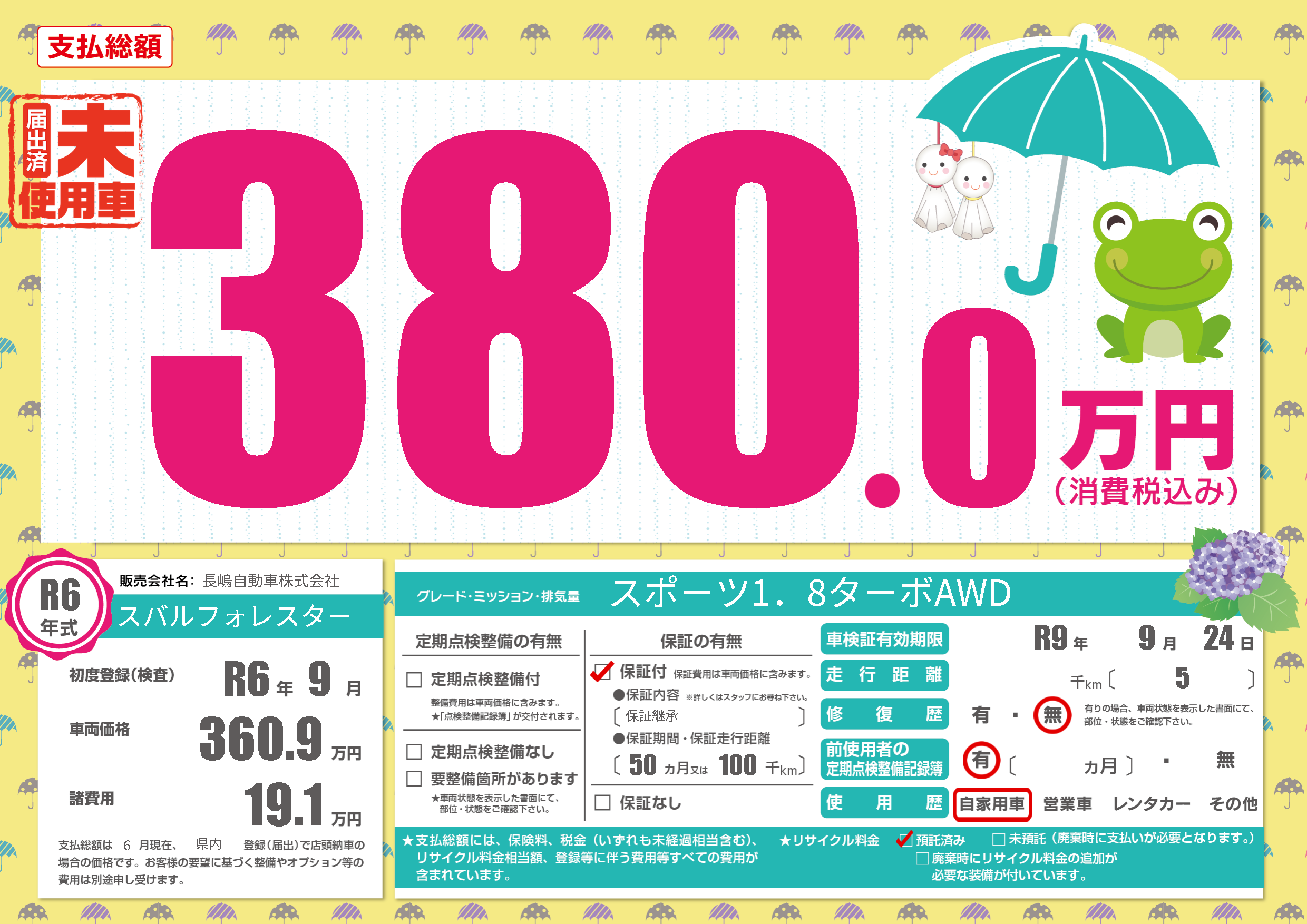 | 走行キロ | - | 初年度登録 | R6年9月 |