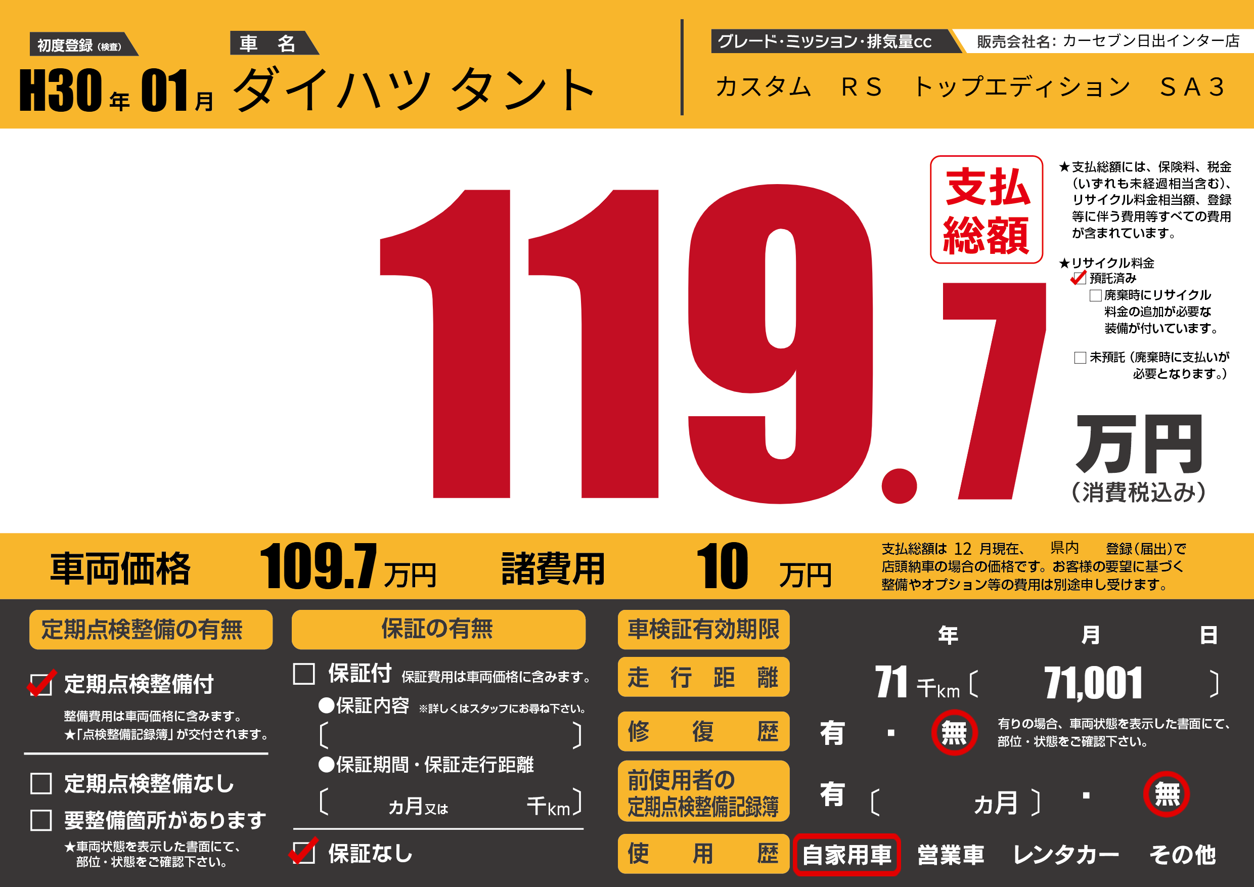 | 走行キロ | 7.1万km | 初年度登録 | H30年01月 |