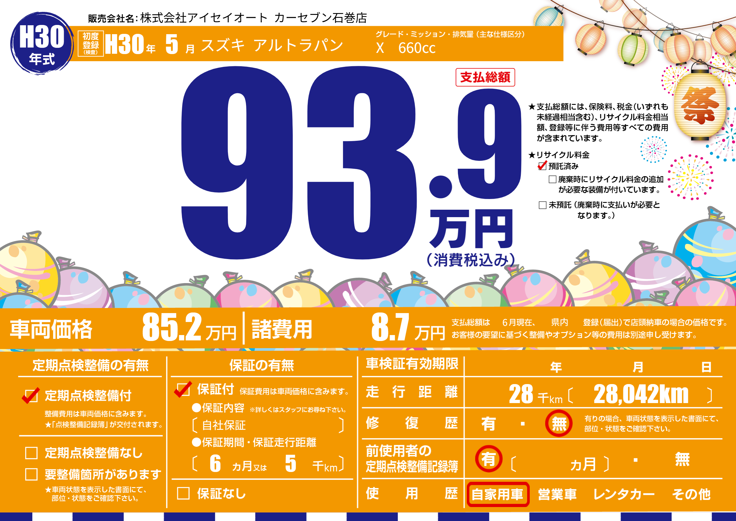 保証付き 保証内容(自社保証) 6ヶ月または(5)千kmまで |