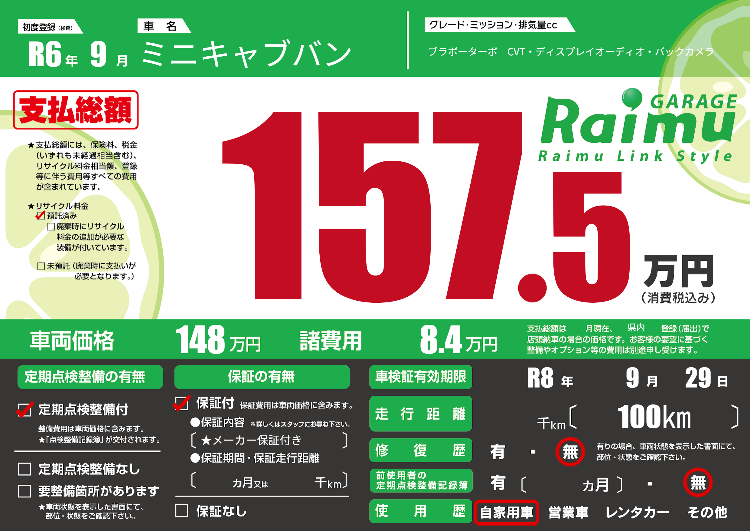 なし | 車検制限 | R8年9月29月 |