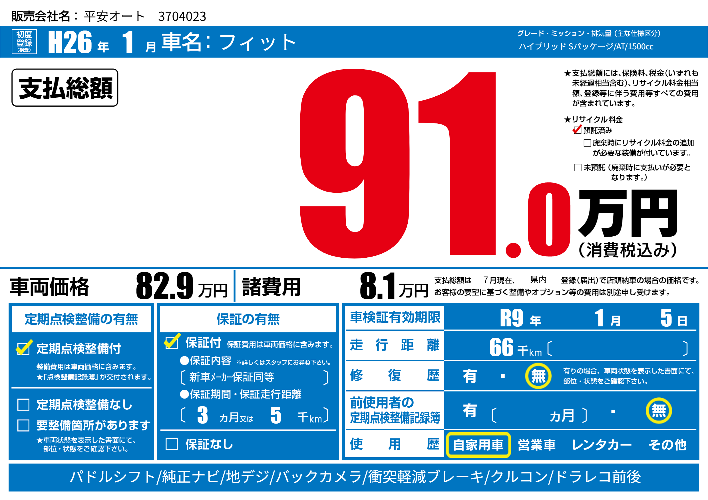 なし | 車検制限 | R9年1月5月 |