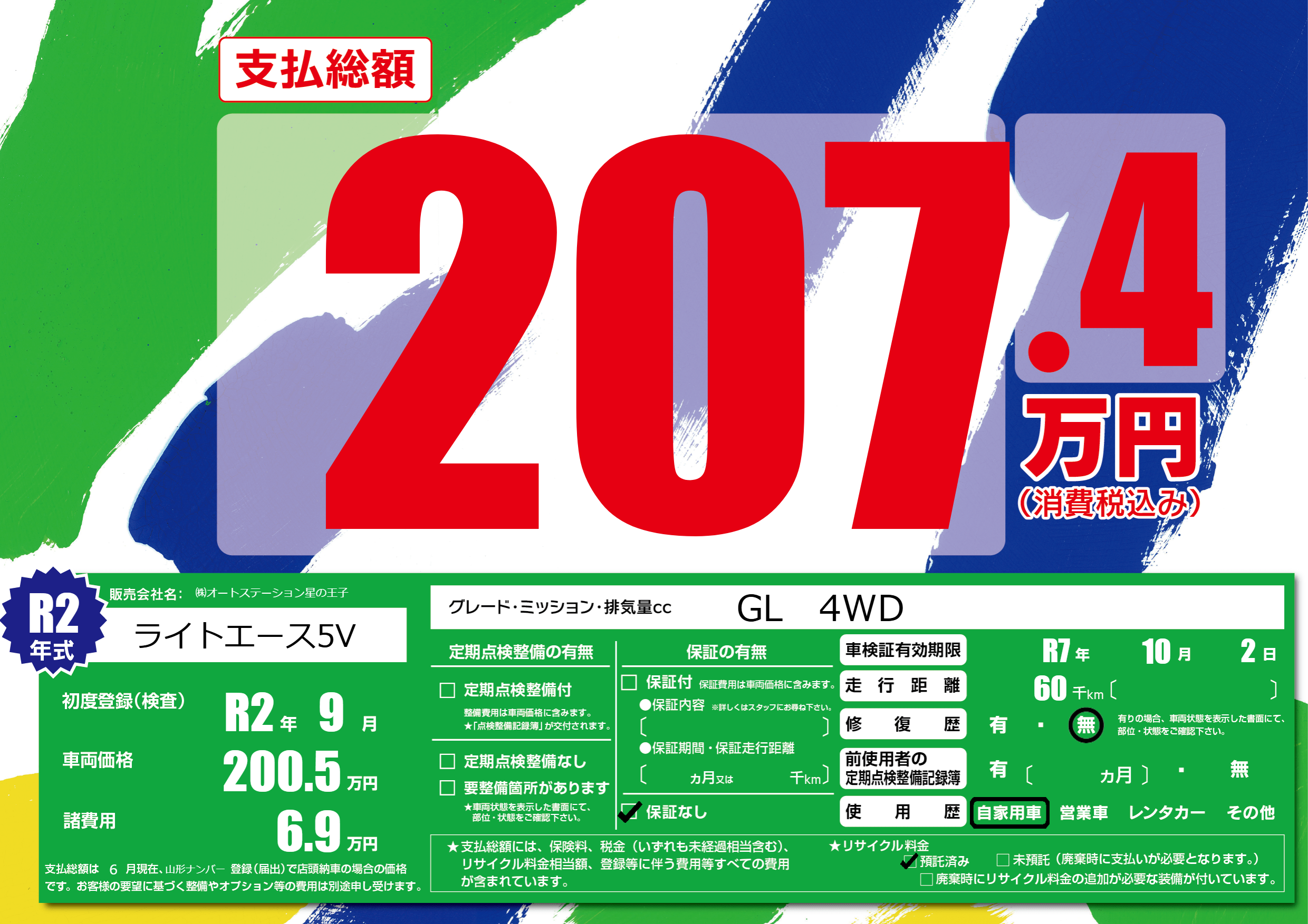なし | 車検制限 | R7年10月2月 |