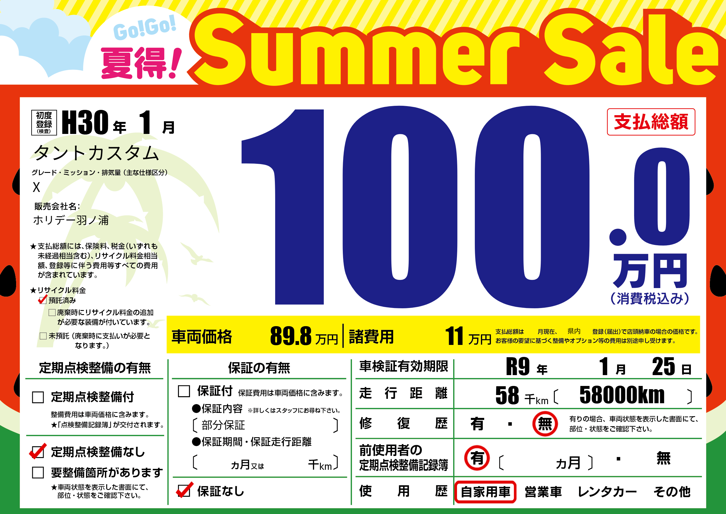 保証なし 保証内容(部分保証) ---ヶ月または()千kmまで |