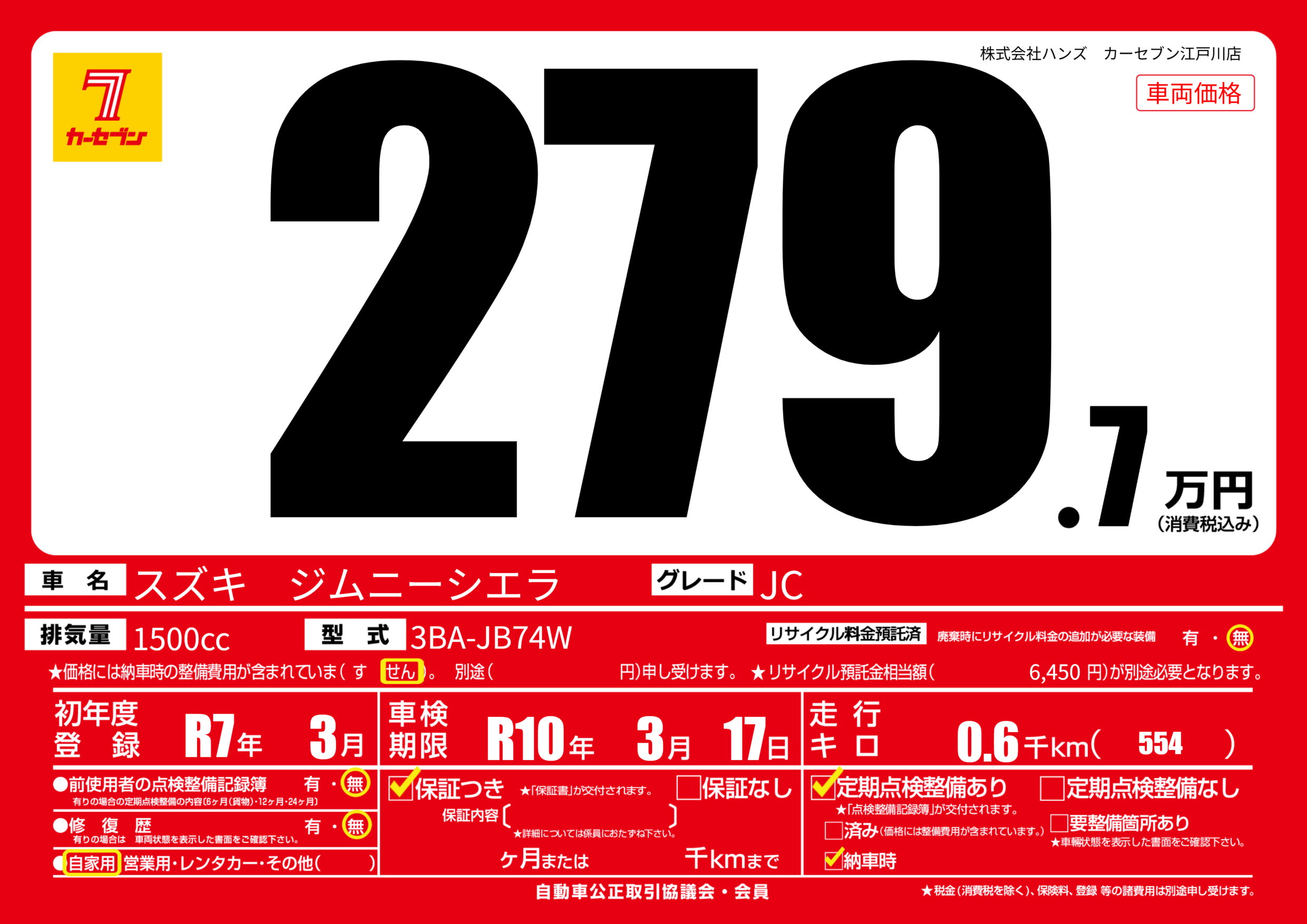 | 走行キロ | - | 初年度登録 | R7年3月 |