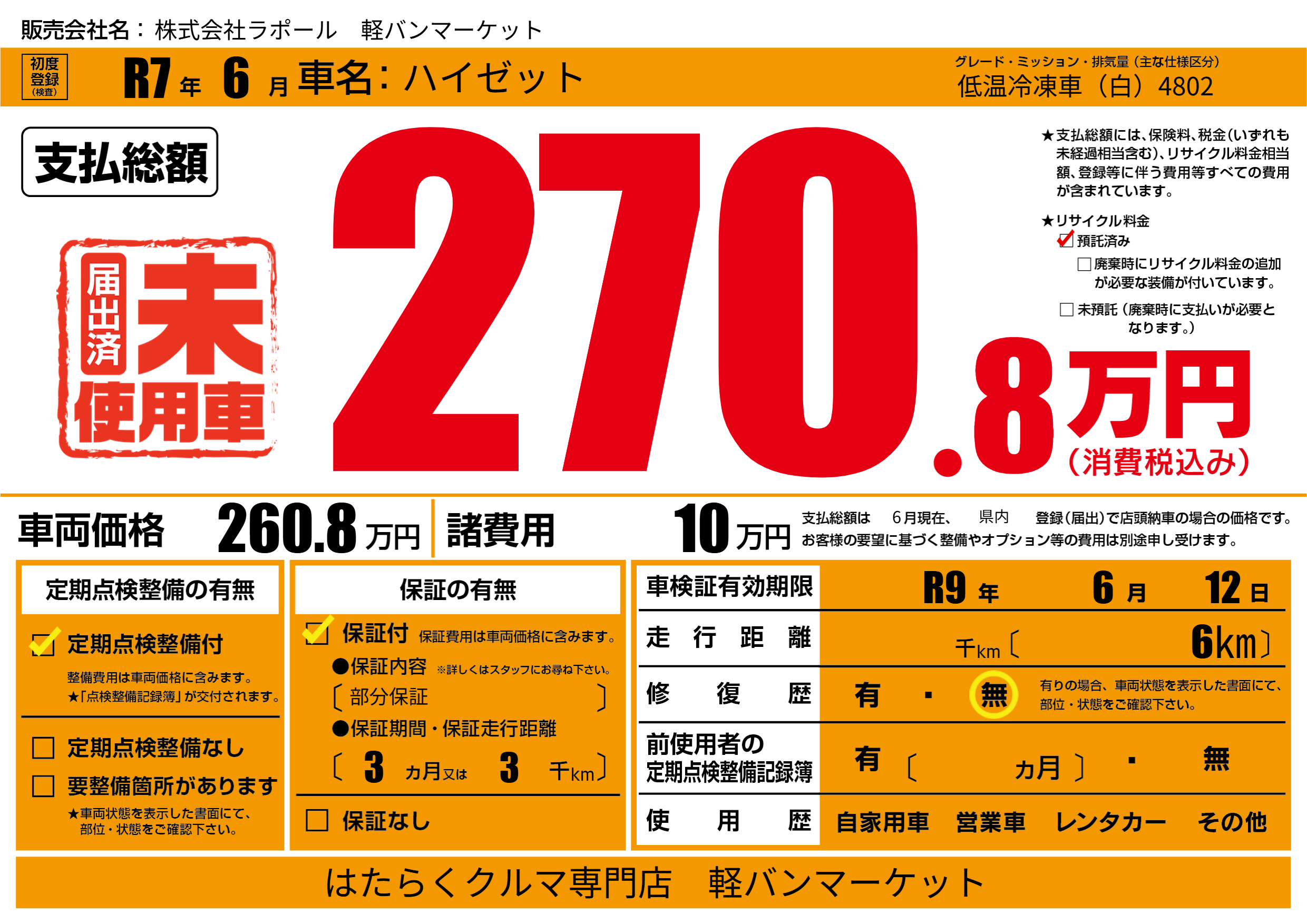 | 走行キロ | - | 初年度登録 | R7年6月 |