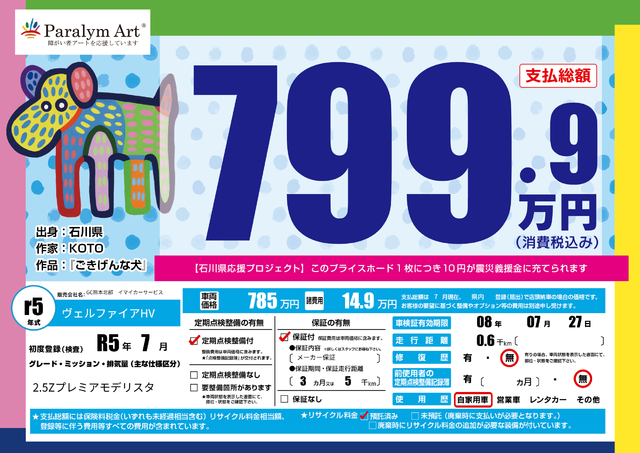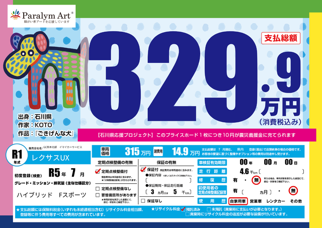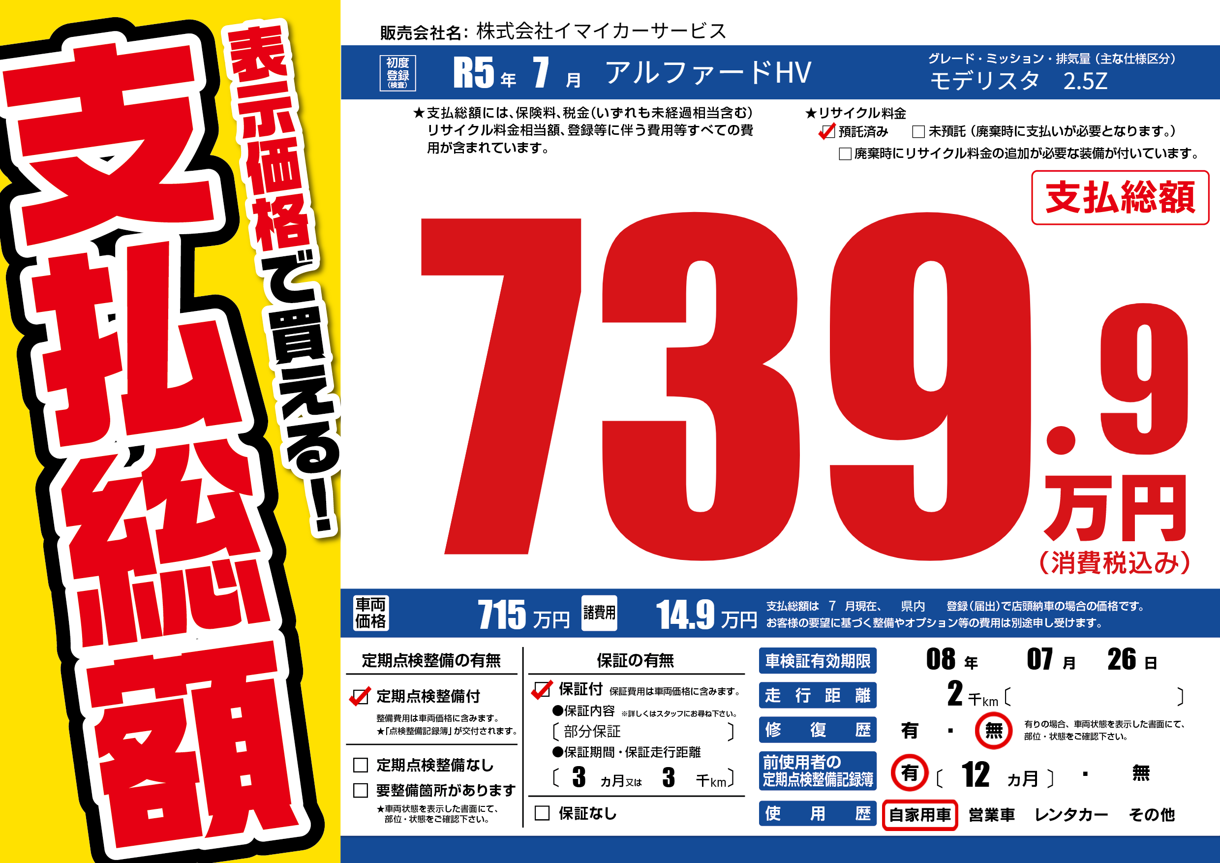 | 走行キロ | 0.2万km | 初年度登録 | R5年7月 |