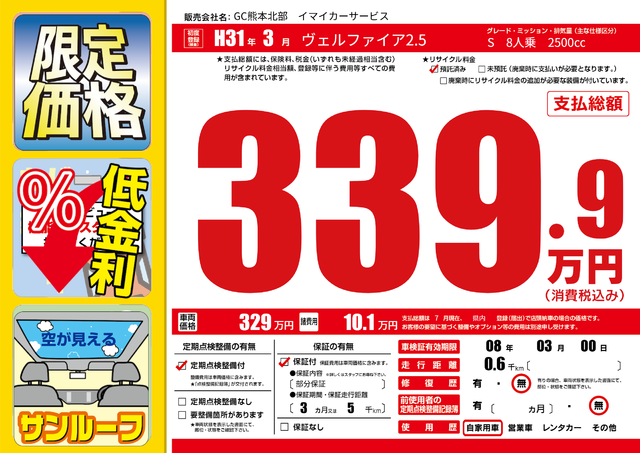 保証付き 保証内容(部分保証) 3ヶ月または(3)千kmまで |