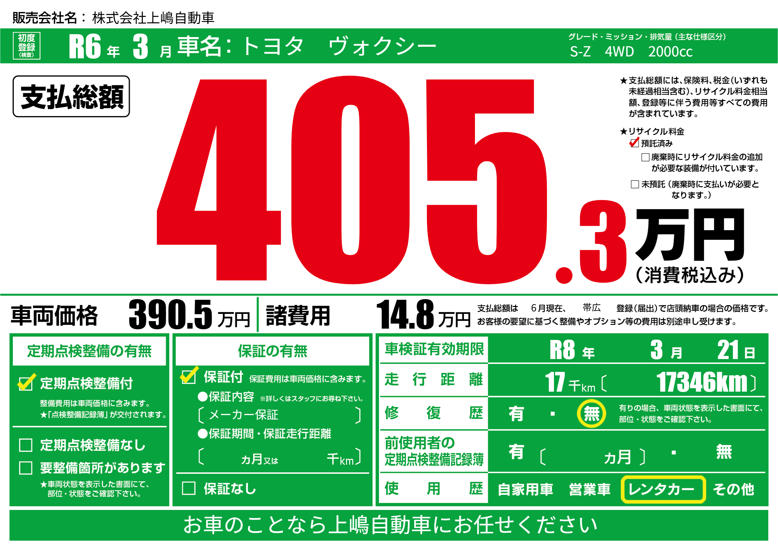 | 車検制限 | R8年 3月 21日 | ||