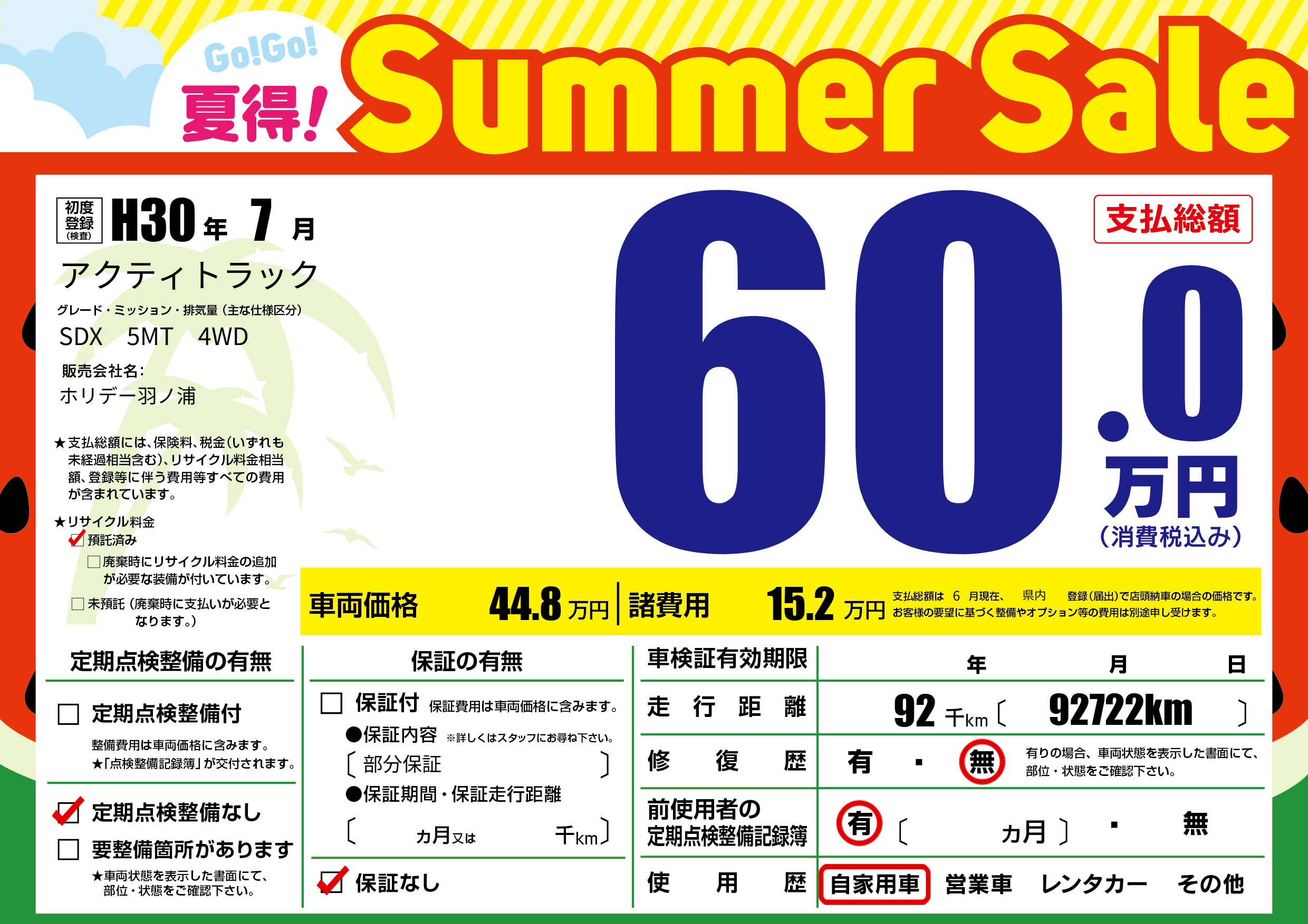 | 車名 | アクティトラック | グレード ミッション 排気量 |