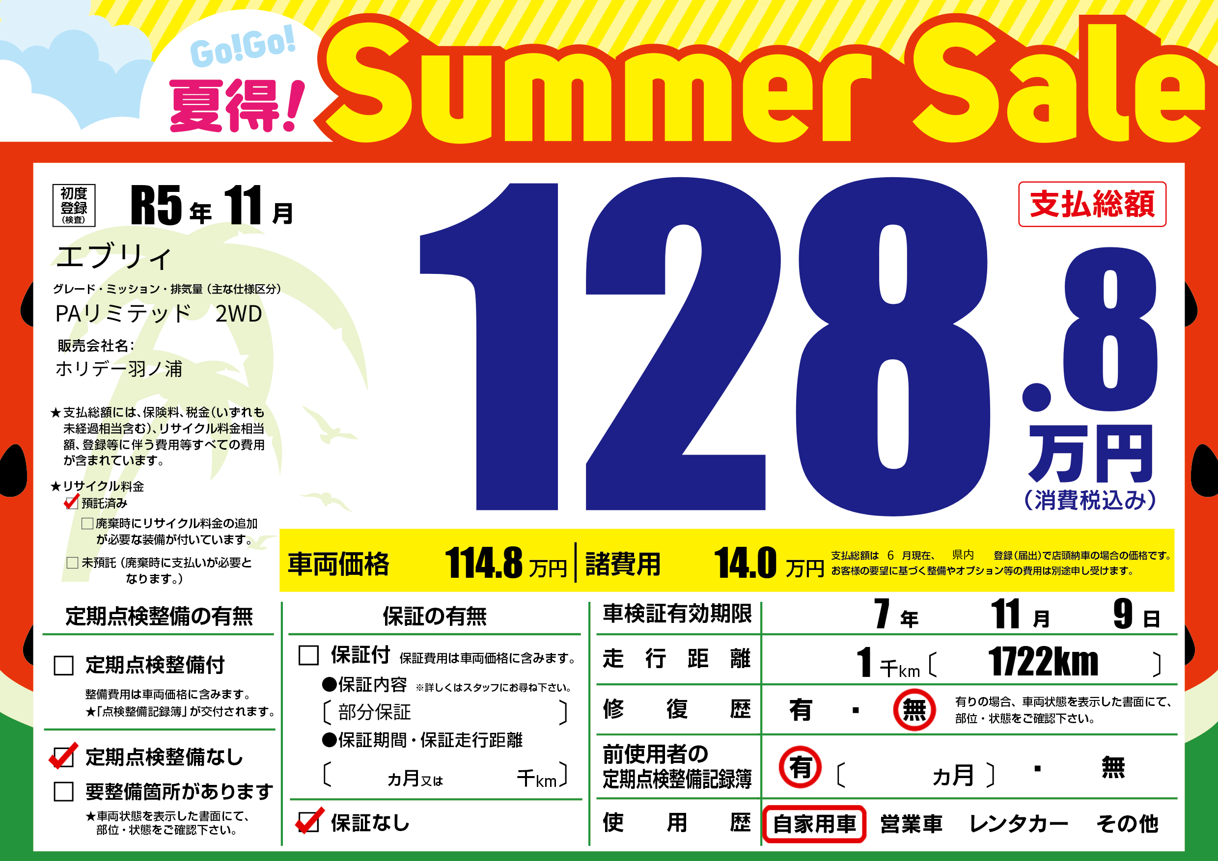 | 定期点検整備 | 定期点検整備なし | ||