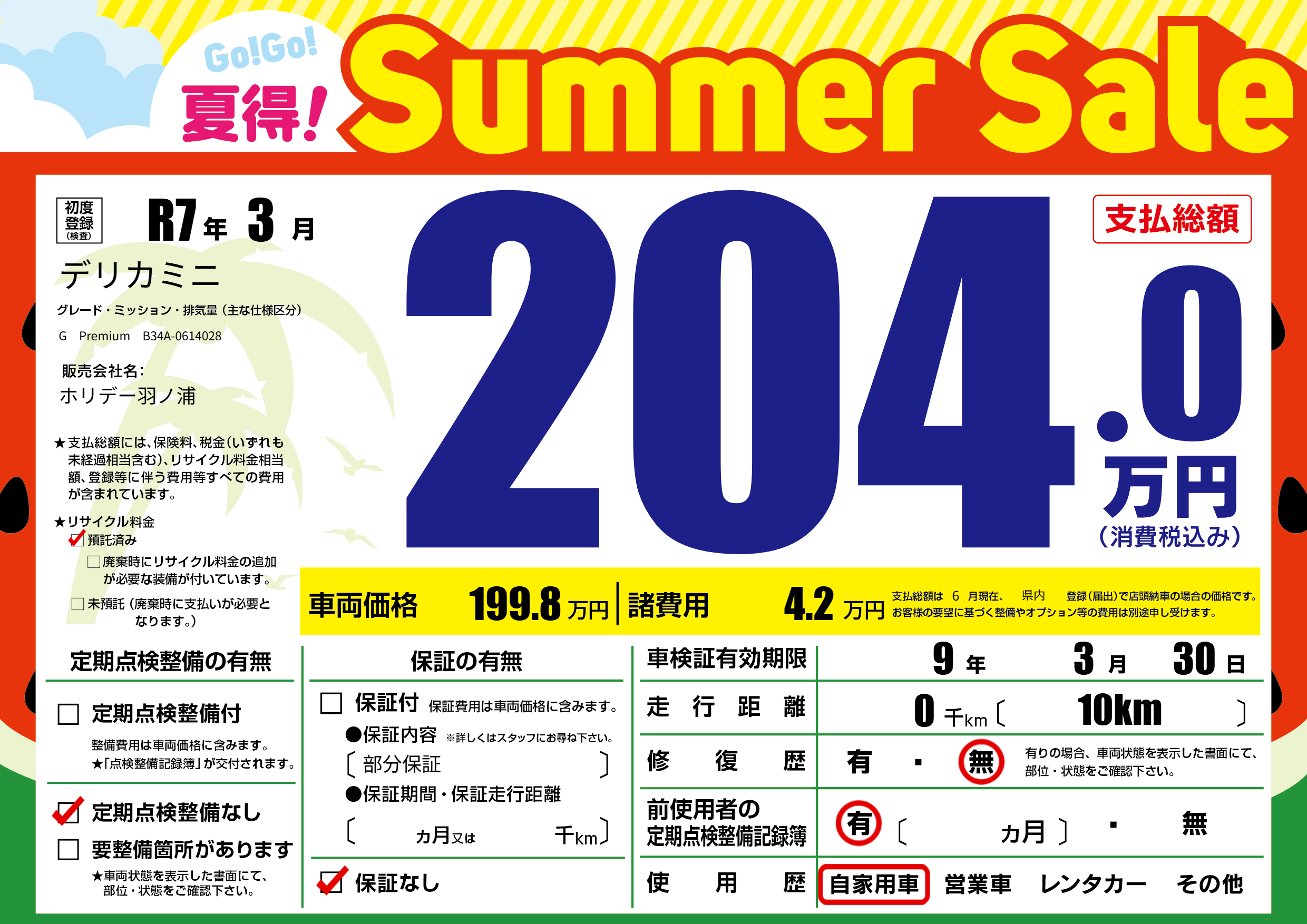 | 走行キロ | - | 初年度登録 | R7年3月 |