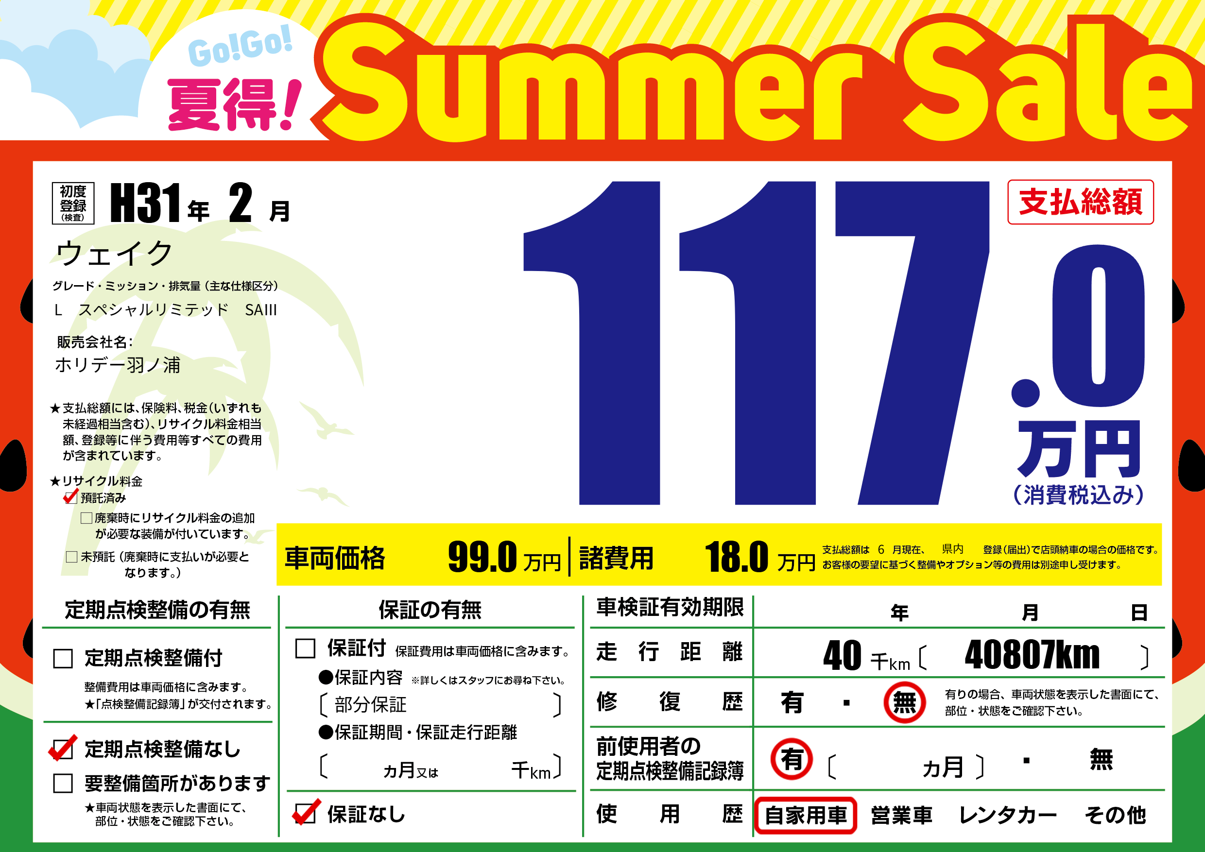 | 車名 | ウェイク | グレード ミッション 排気量 |