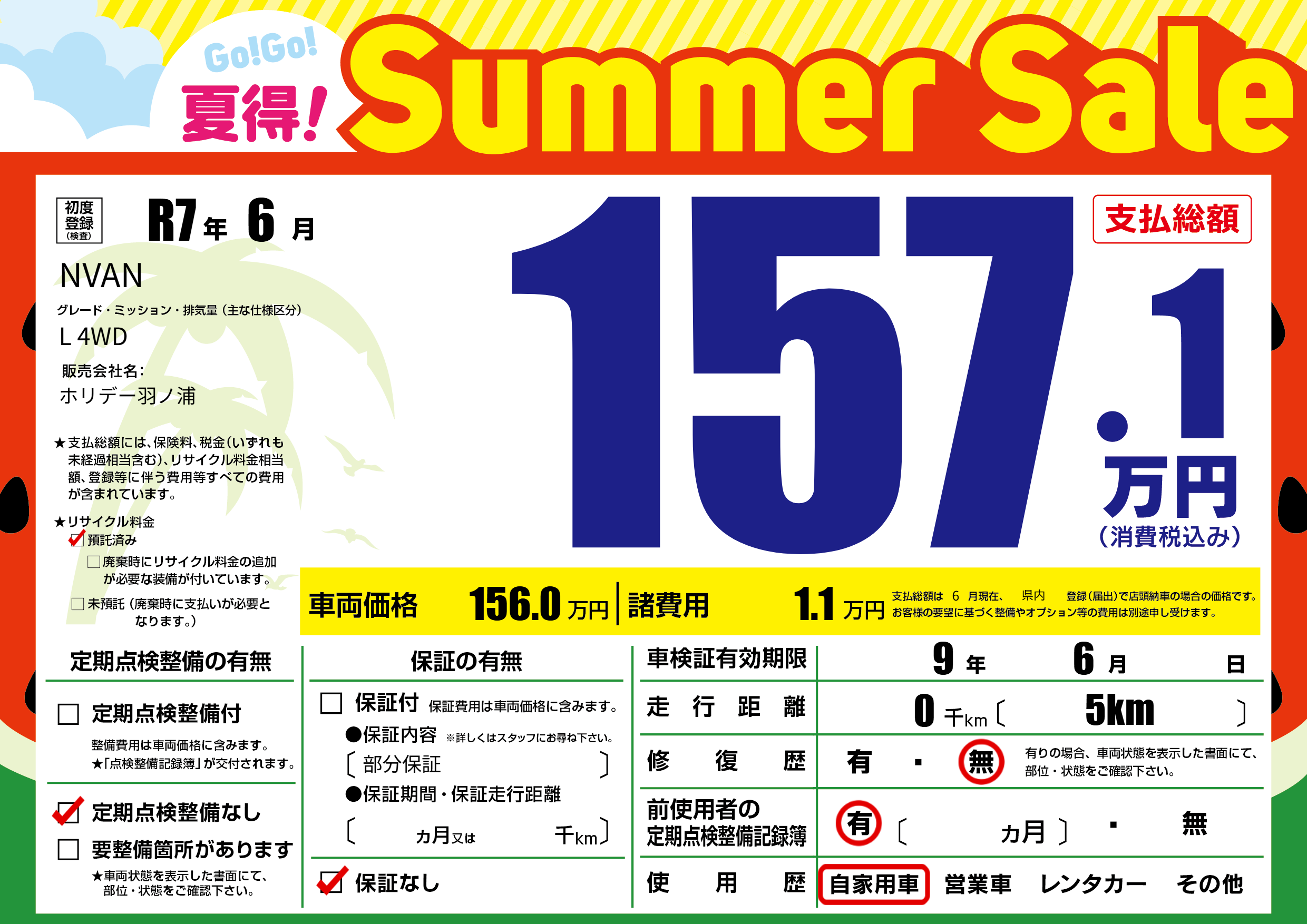 | 走行キロ | - | 初年度登録 | R7年6月 |