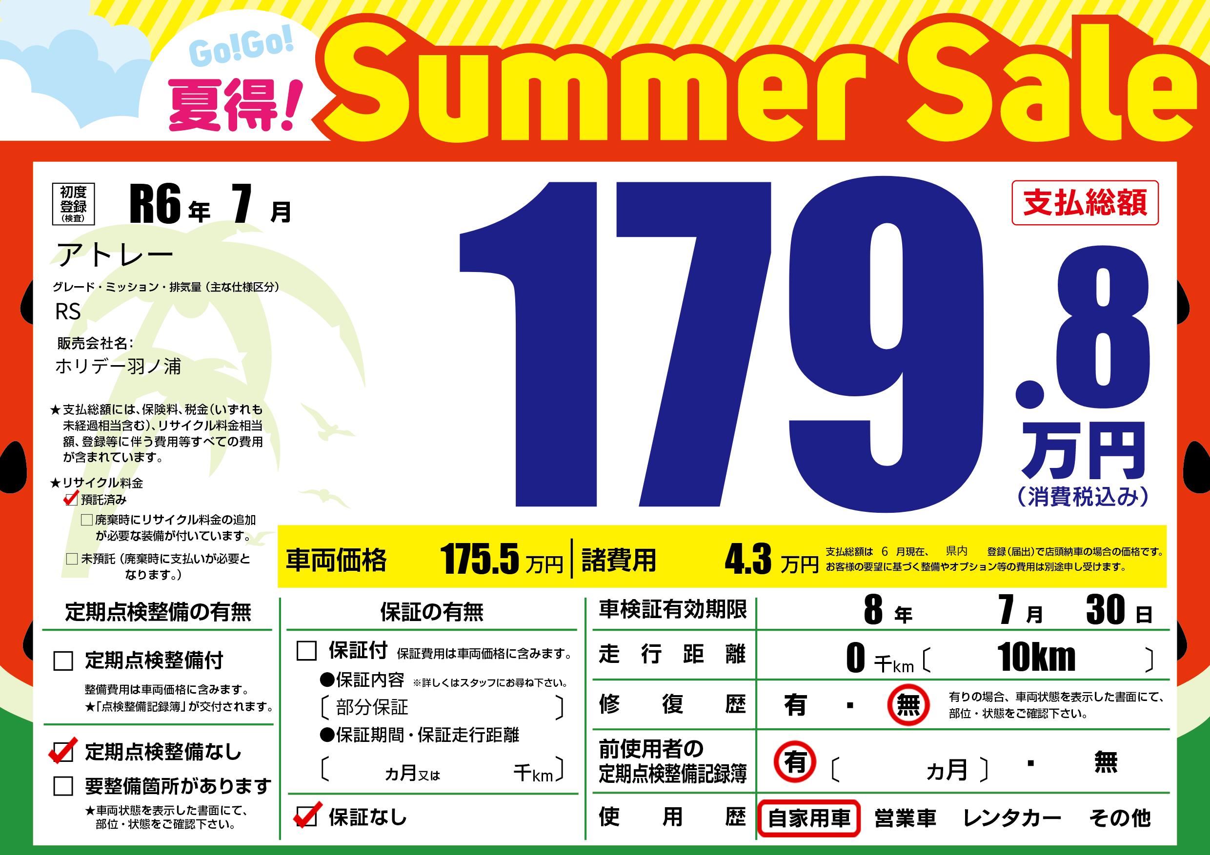 なし | 車検制限 | 8年7月30月 |