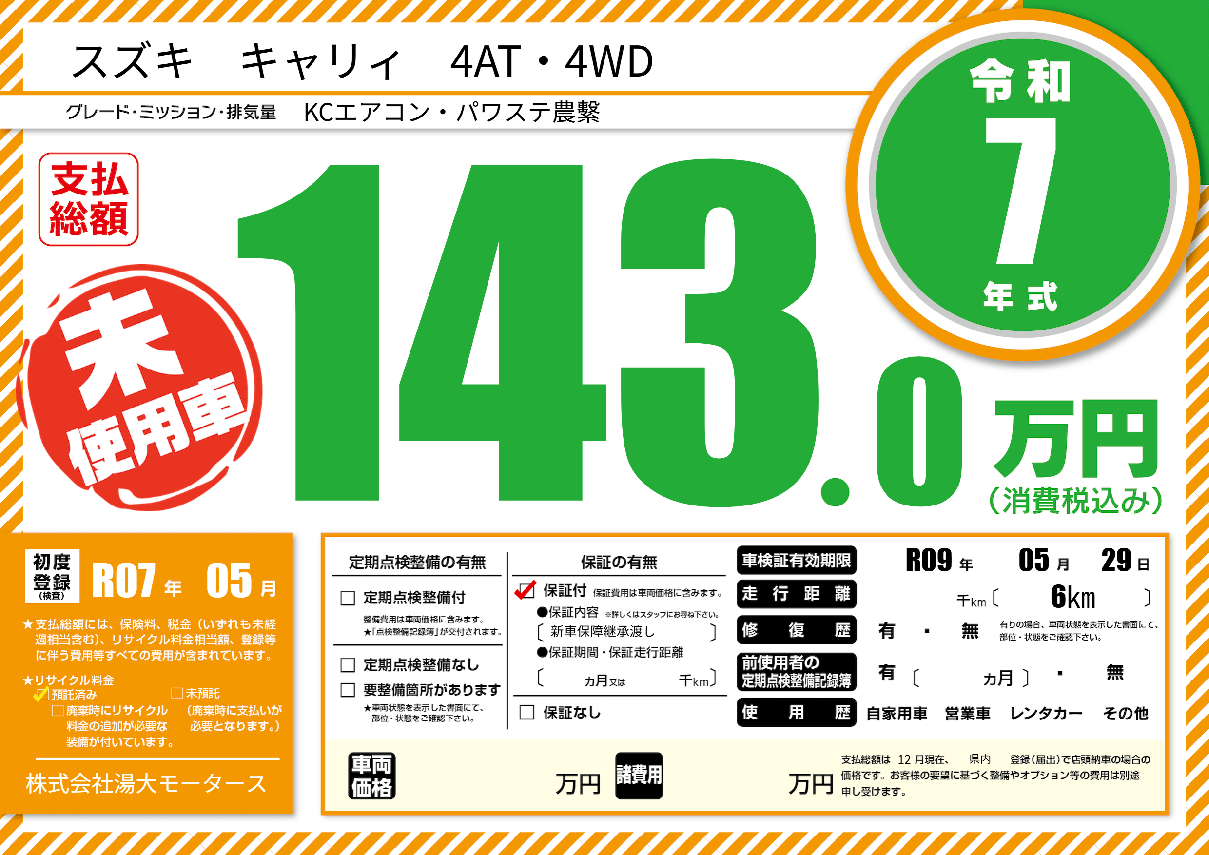 | 走行キロ | - | 初年度登録 | R07年05月 |