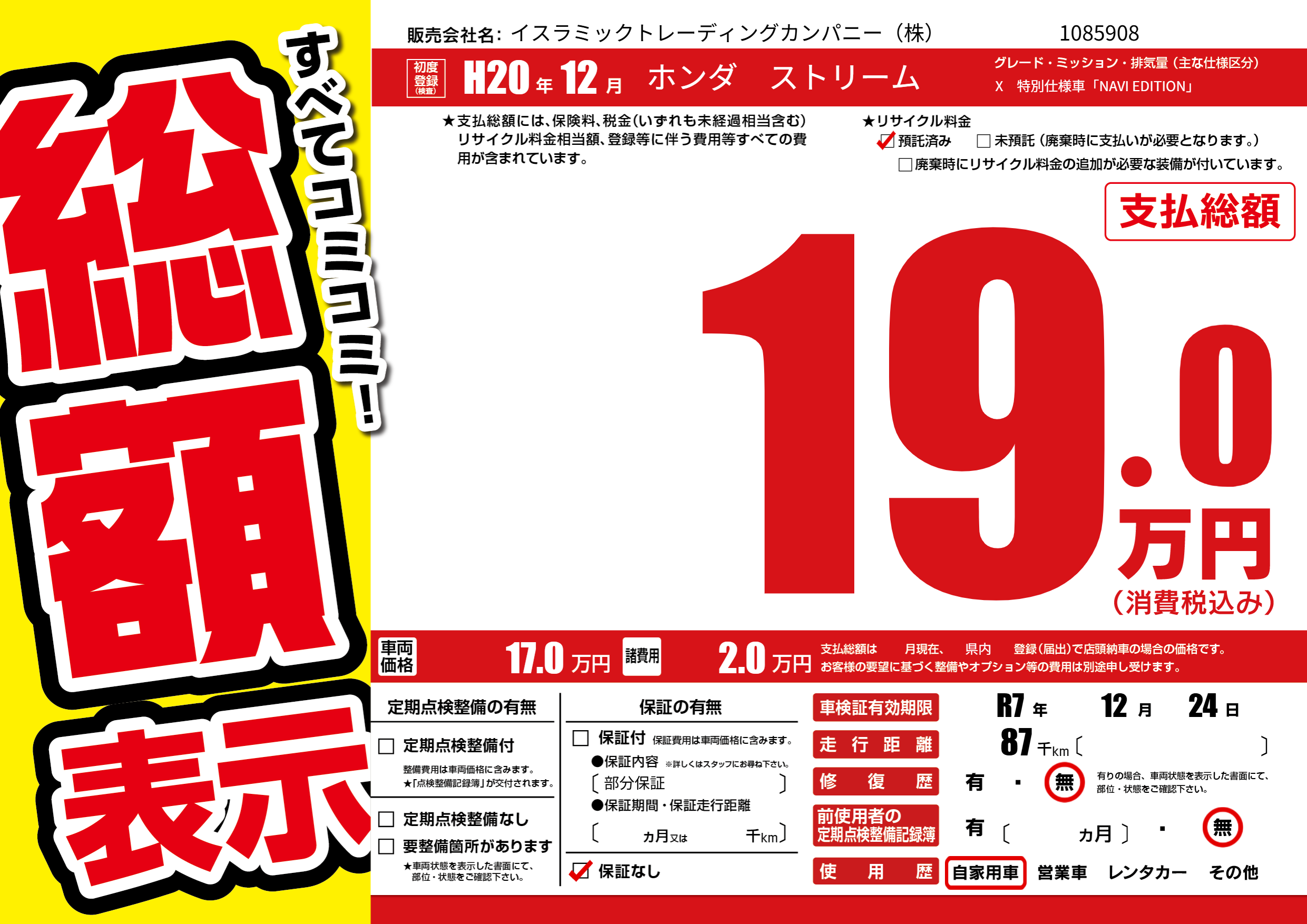 | 初年度登録 | H20年12月 | ||