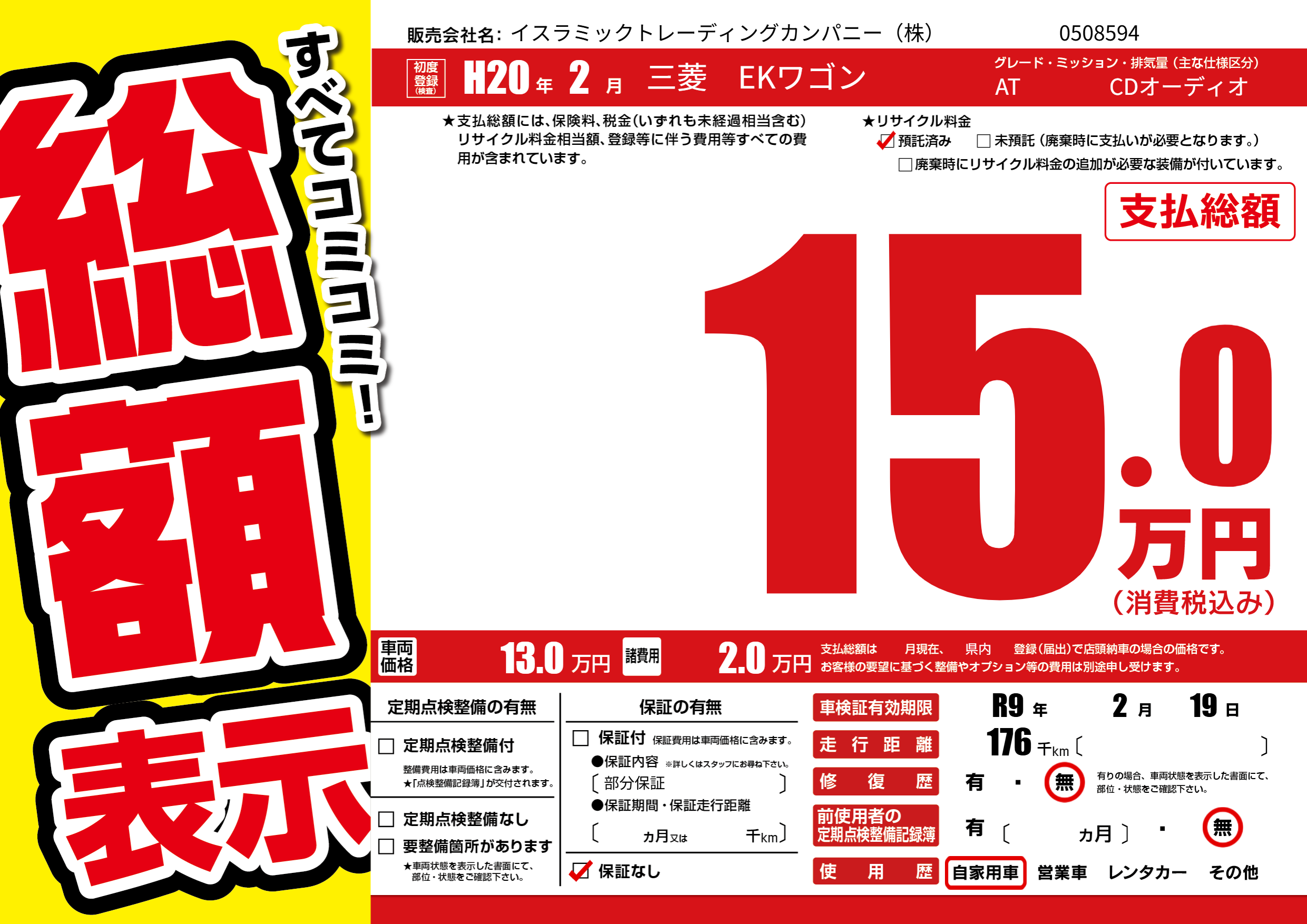 なし | 車検制限 | R9年2月19月 |