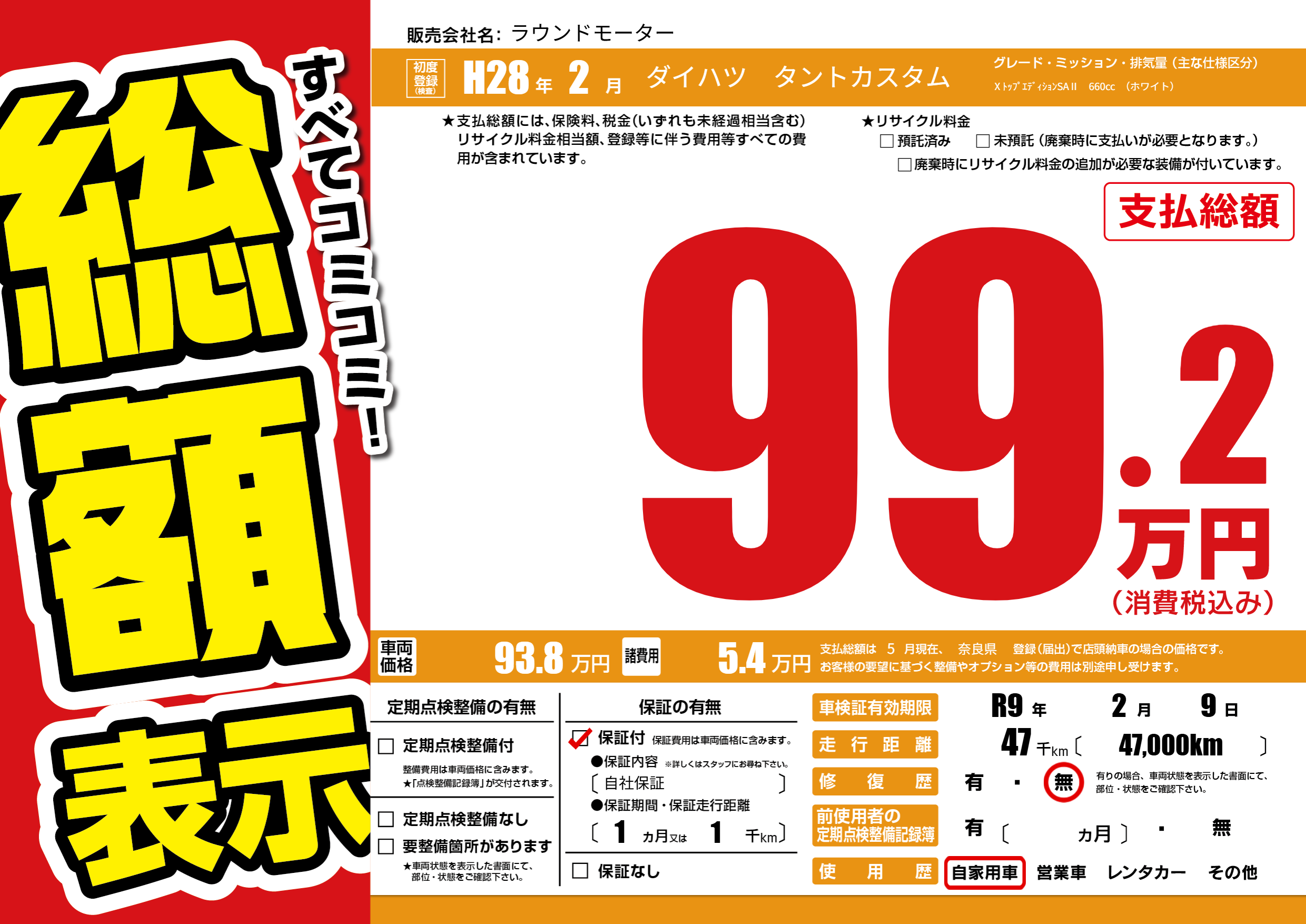 保証付き 保証内容(自社保証) 1ヶ月または(1)千kmまで |