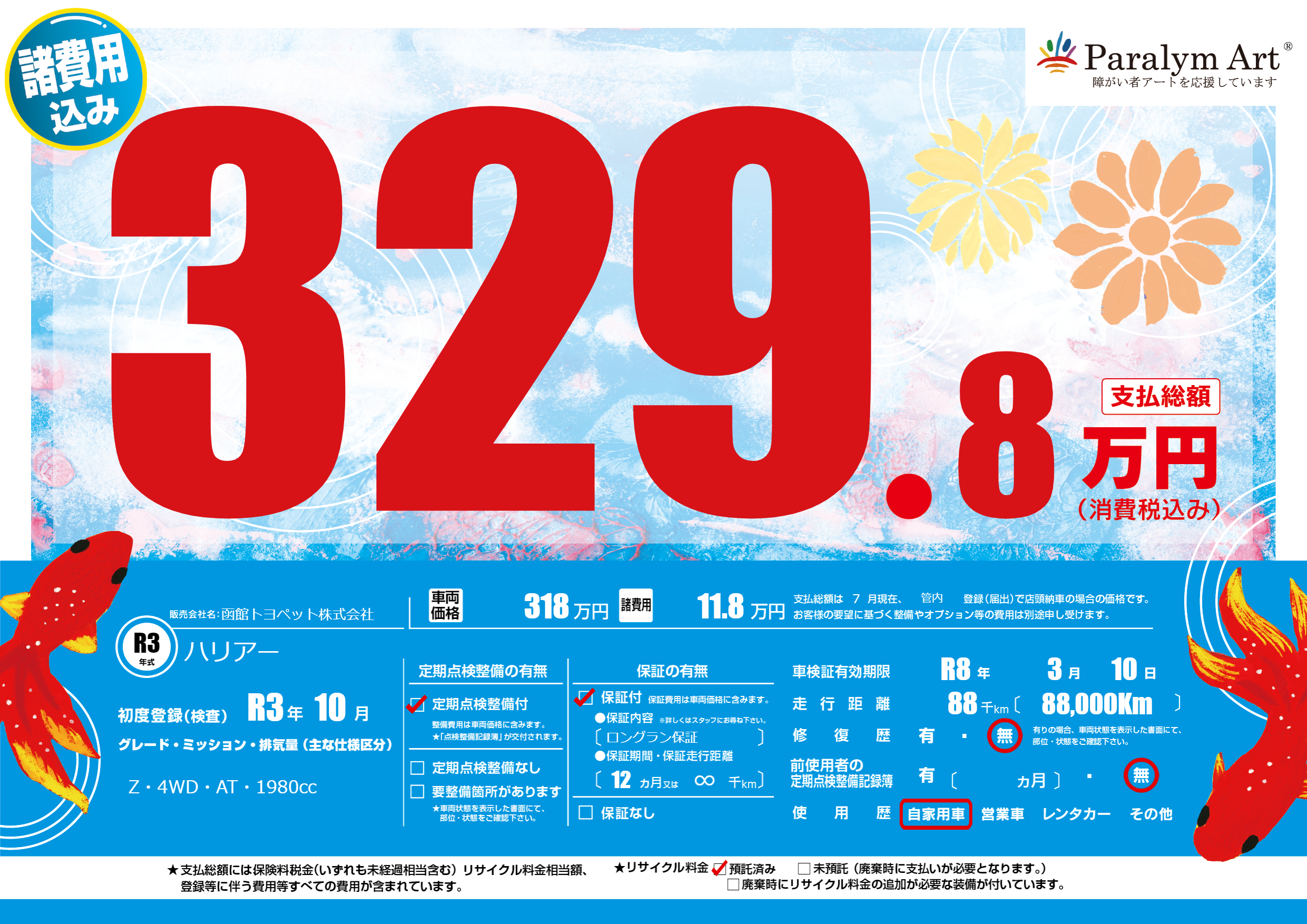 | 走行キロ | 8.8万km | 初年度登録 | R3年10月 |