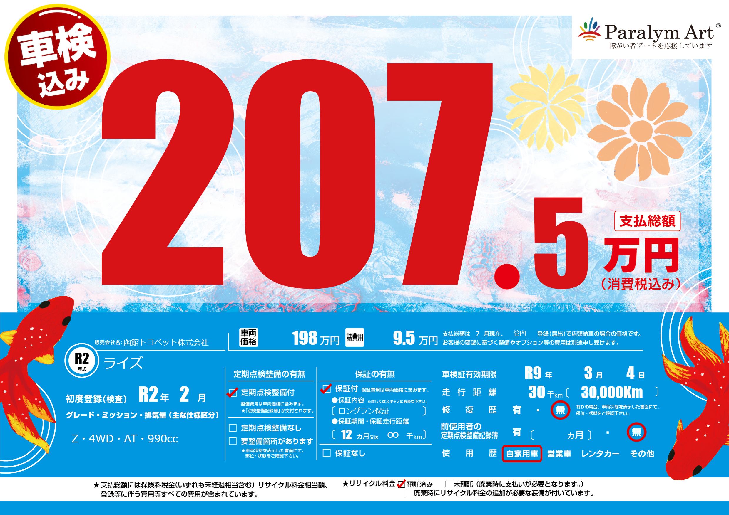 | 走行キロ | 3万km | 初年度登録 | R2年2月 |