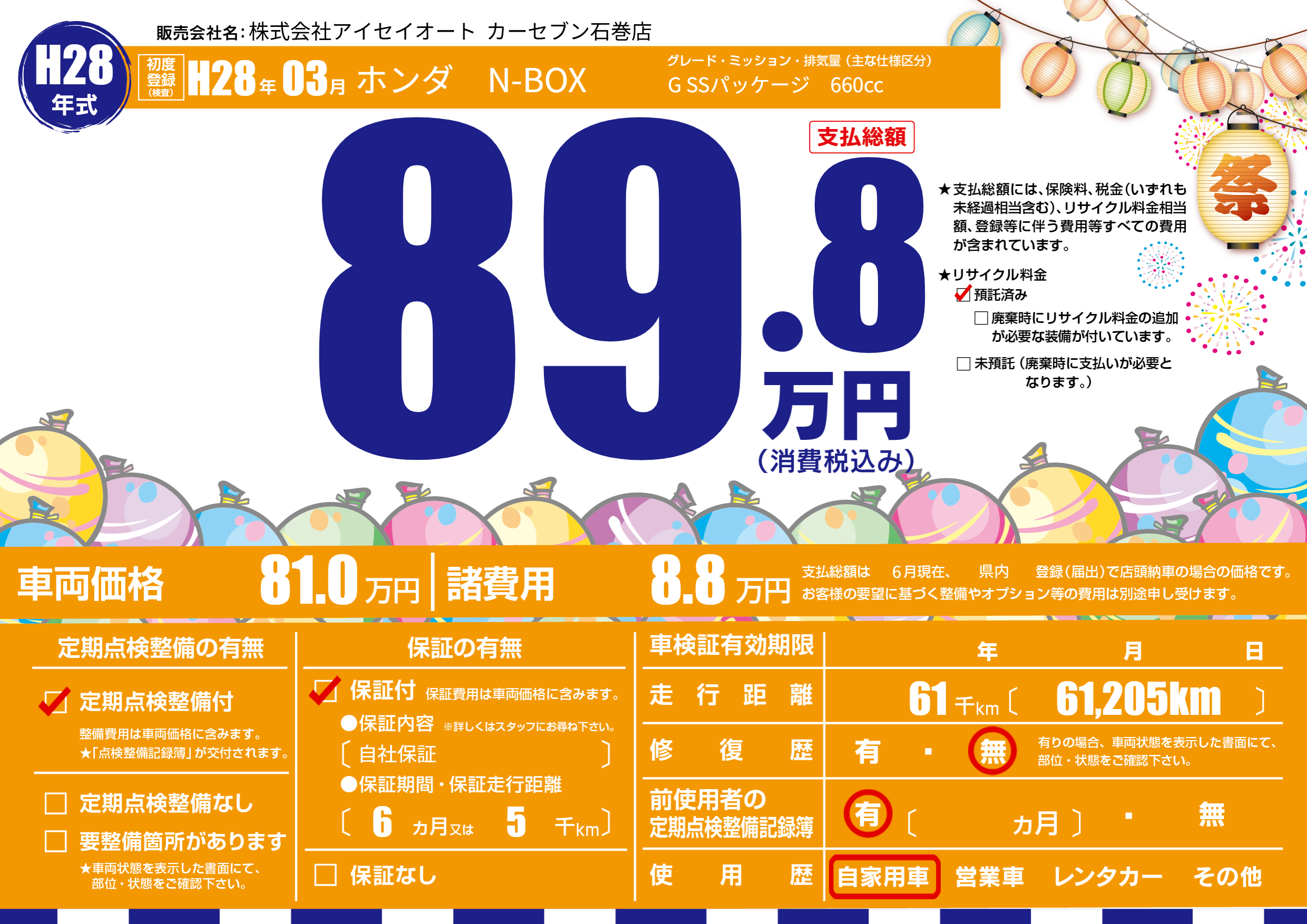 保証付き 保証内容(自社保証) 6ヶ月または5千km |