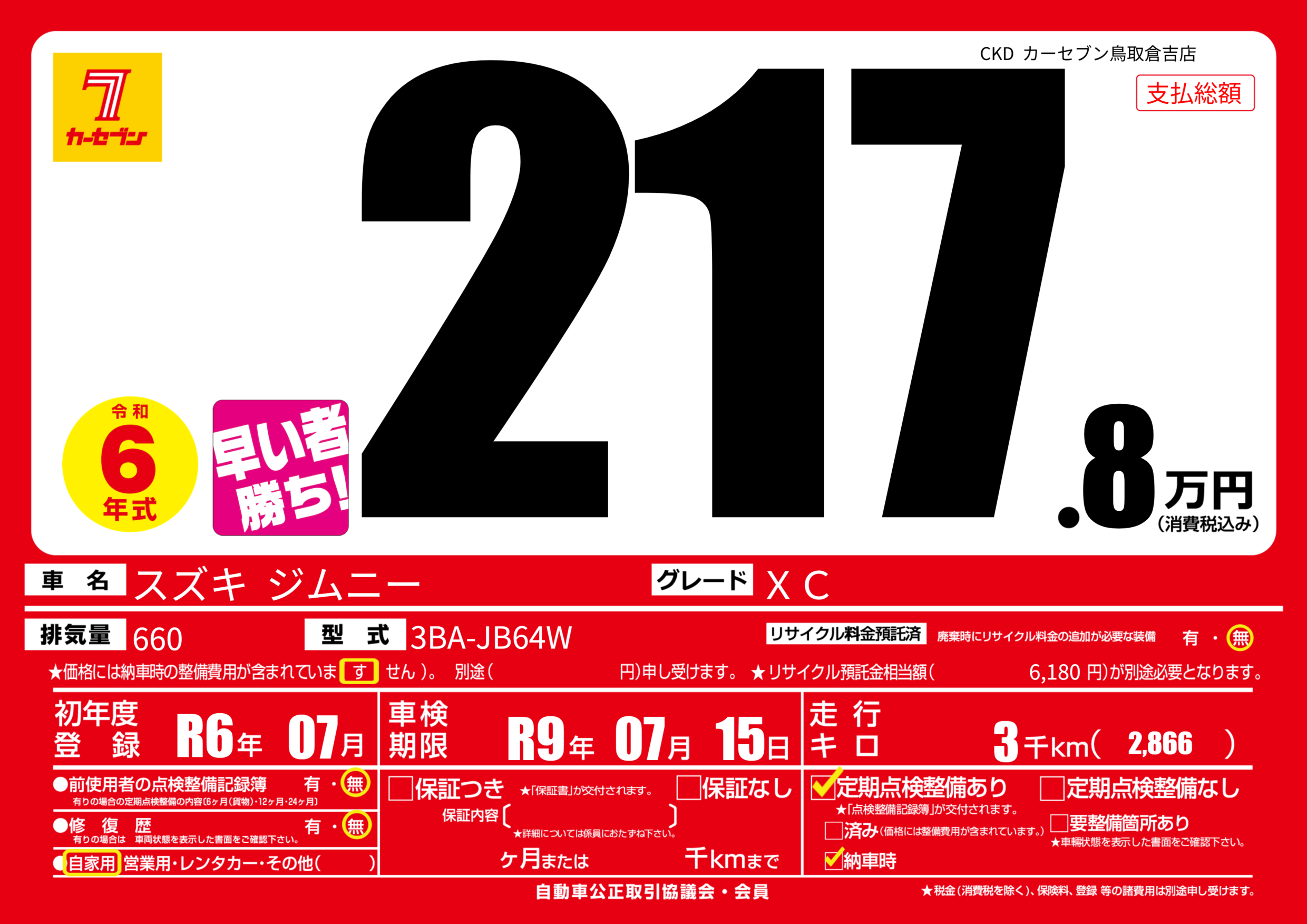 | 車検制限 | R9年 07月 15日 | ||