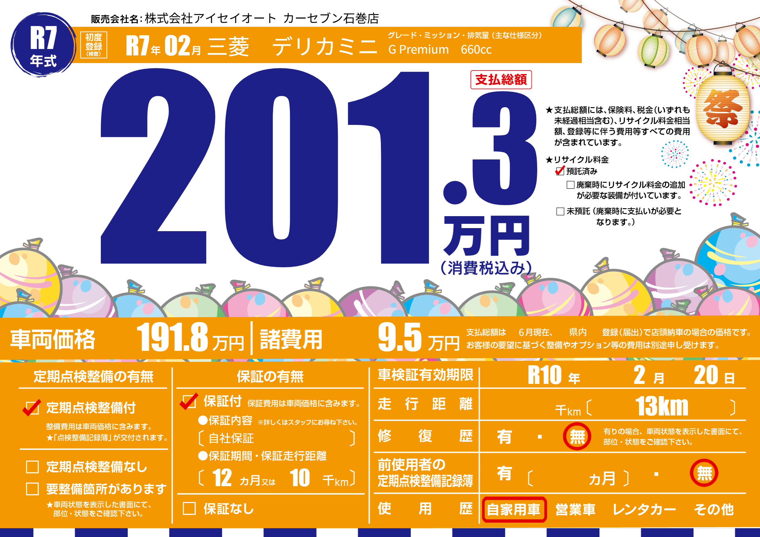保証付き 保証内容(自社保証) 12ヶ月または(10)千kmまで |