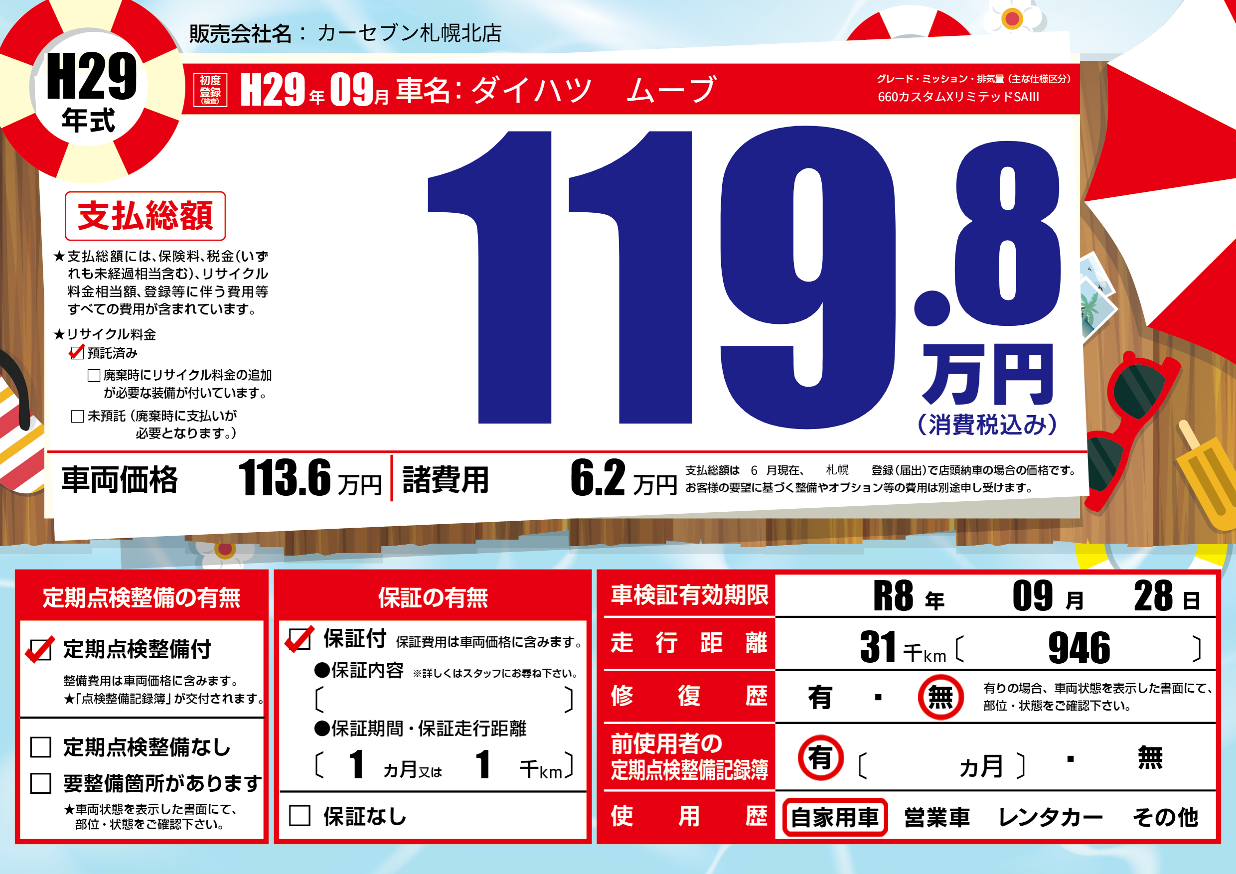 なし | 車検制限 | R8年09月28月 |