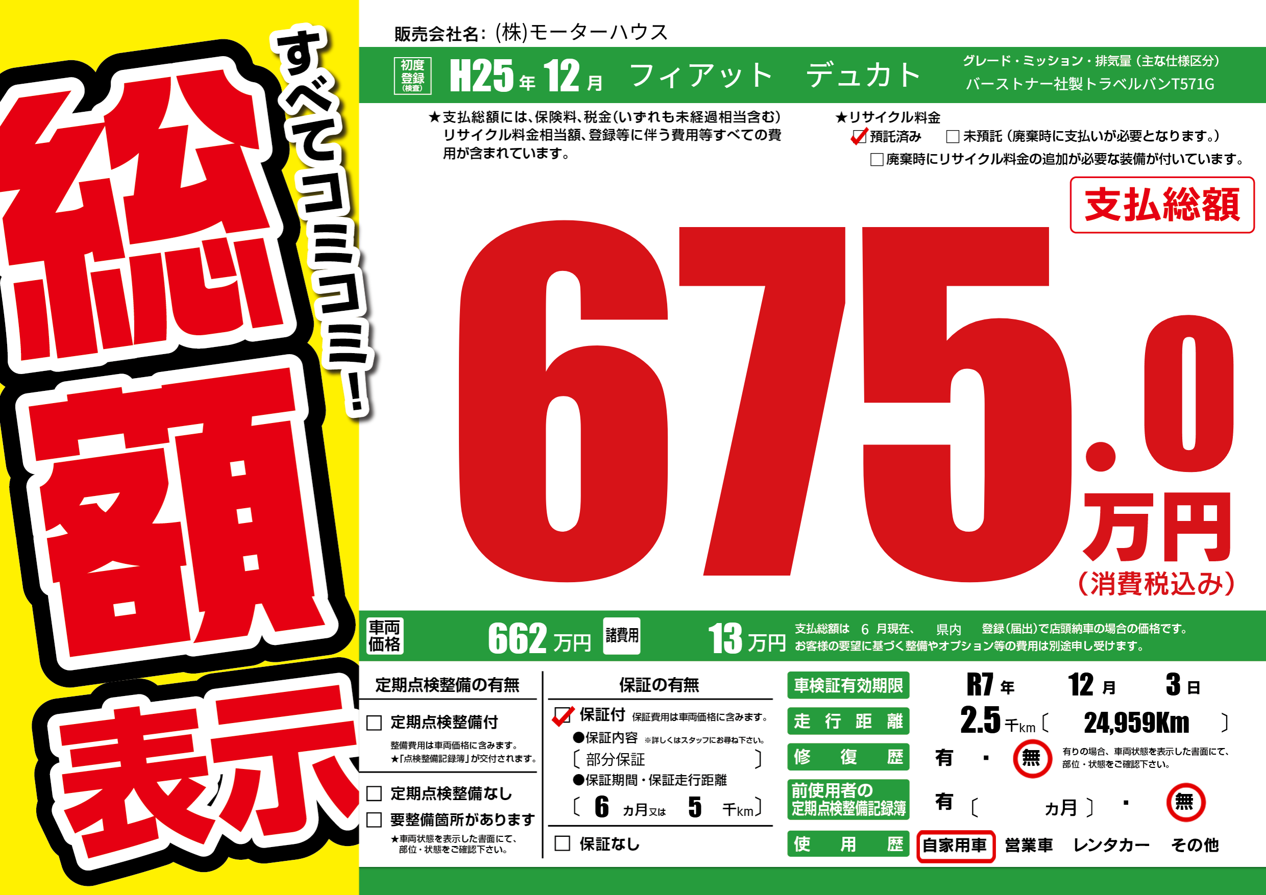 なし | 車検制限 | R7年12月3月 |