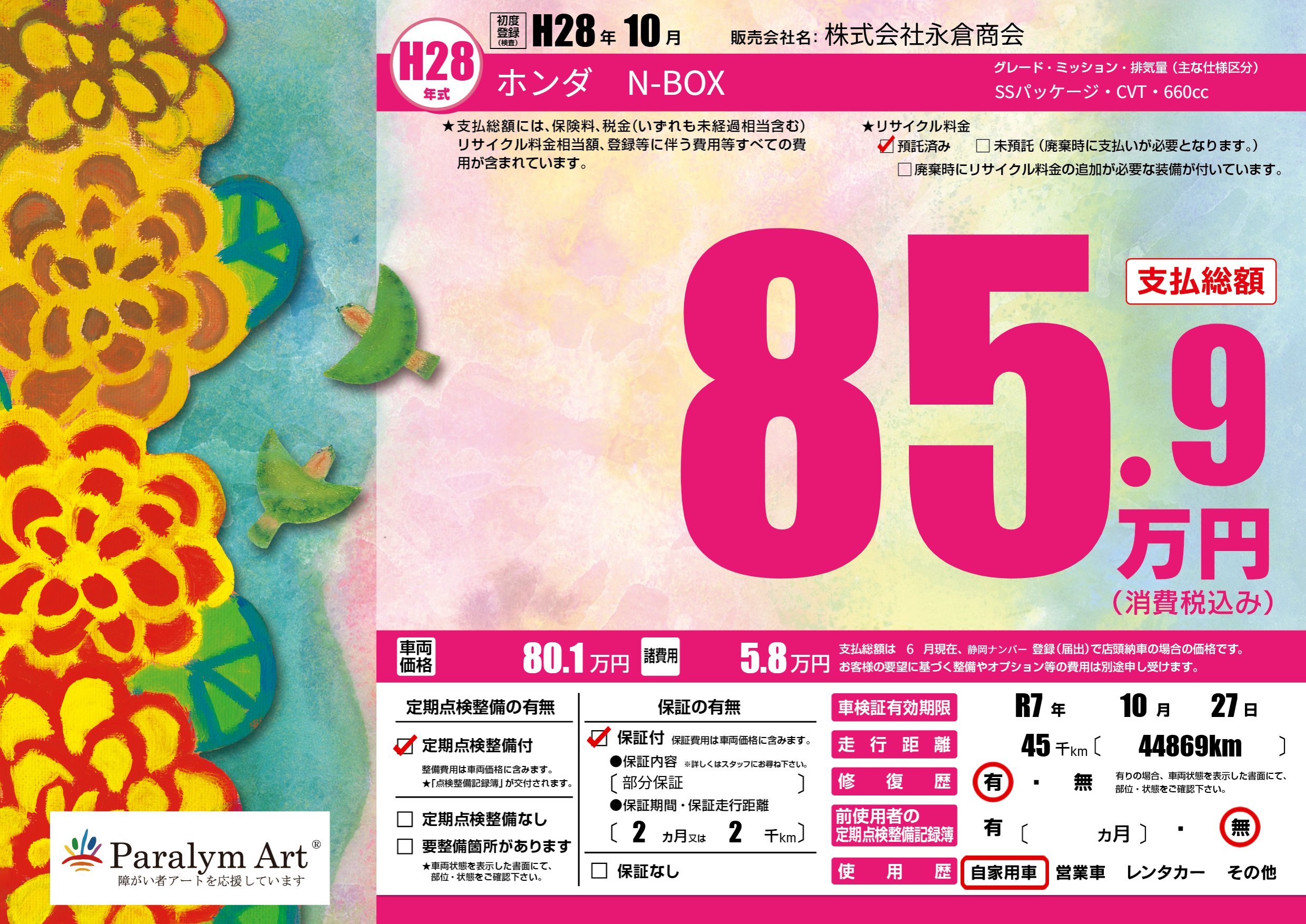 なし | 車検制限 | R7年10月27月 |