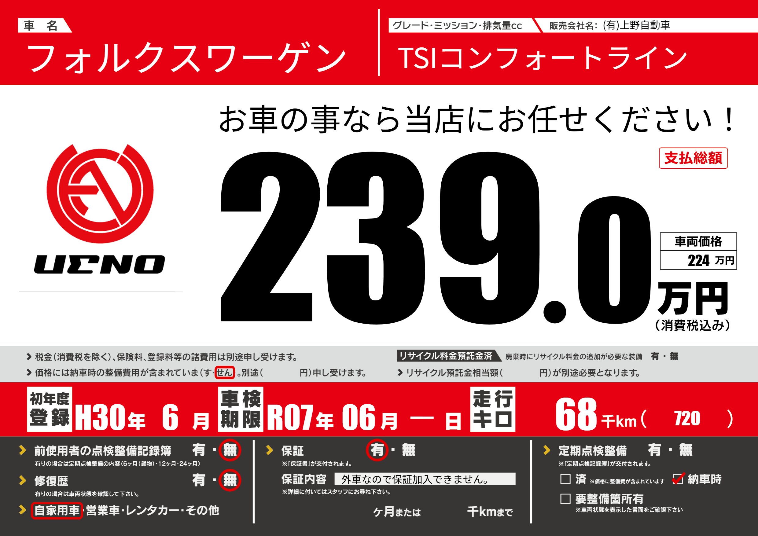 | 車名 | フォルクスワーゲン | グレード ミッション 排気量 |