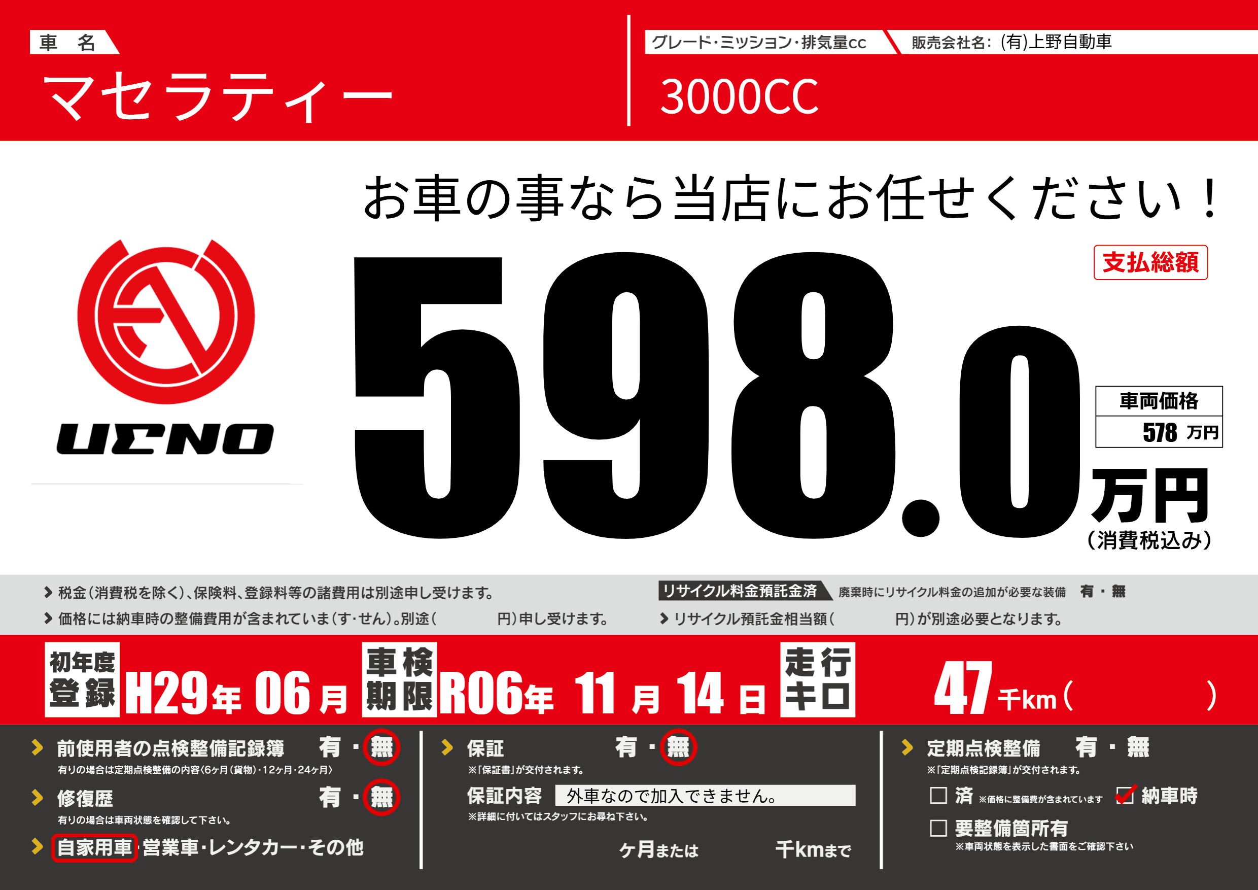 | 車名 | マセラティー | グレード ミッション 排気量 |