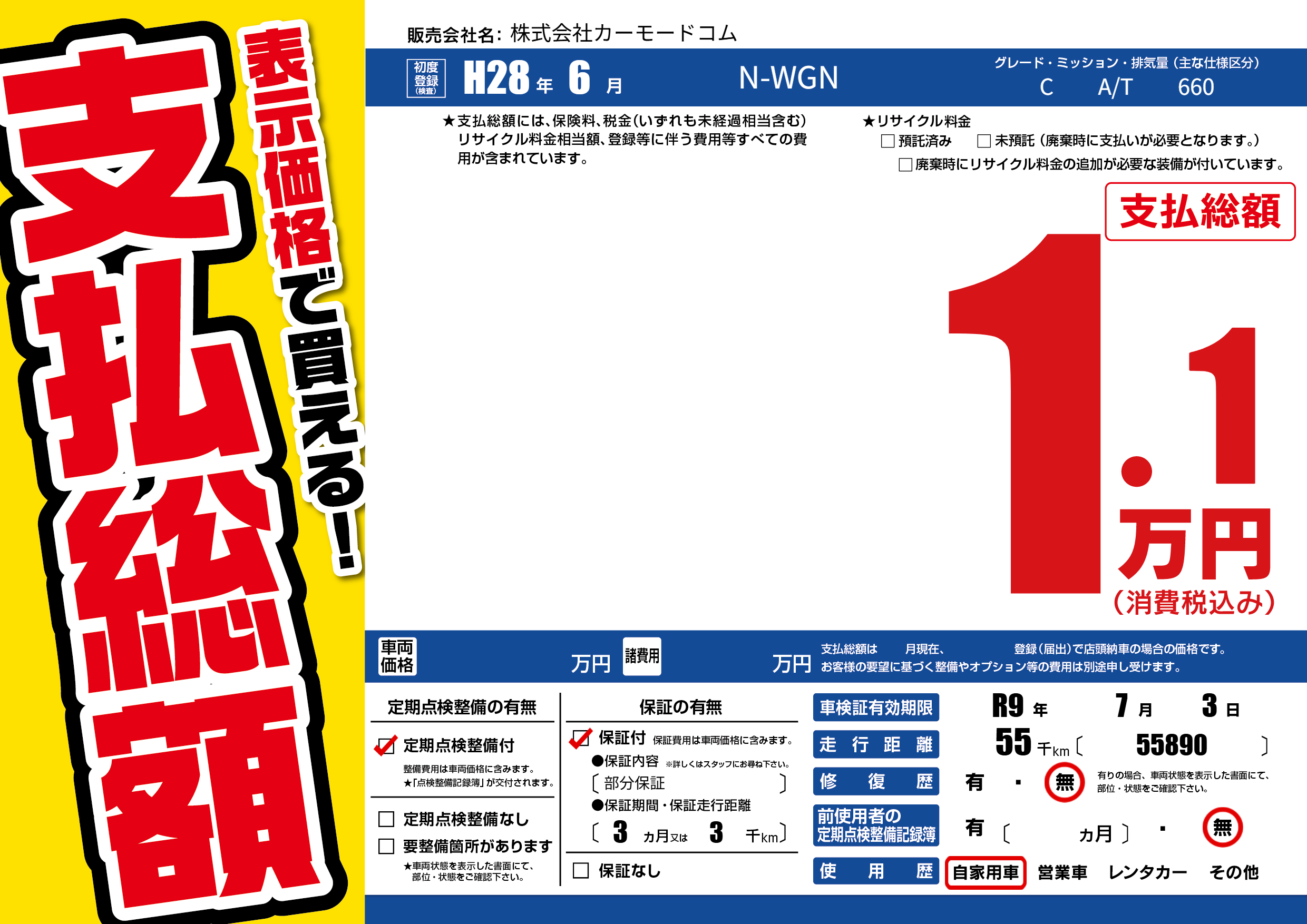| 車名 | N-WGN | グレード ミッション 排気量 |