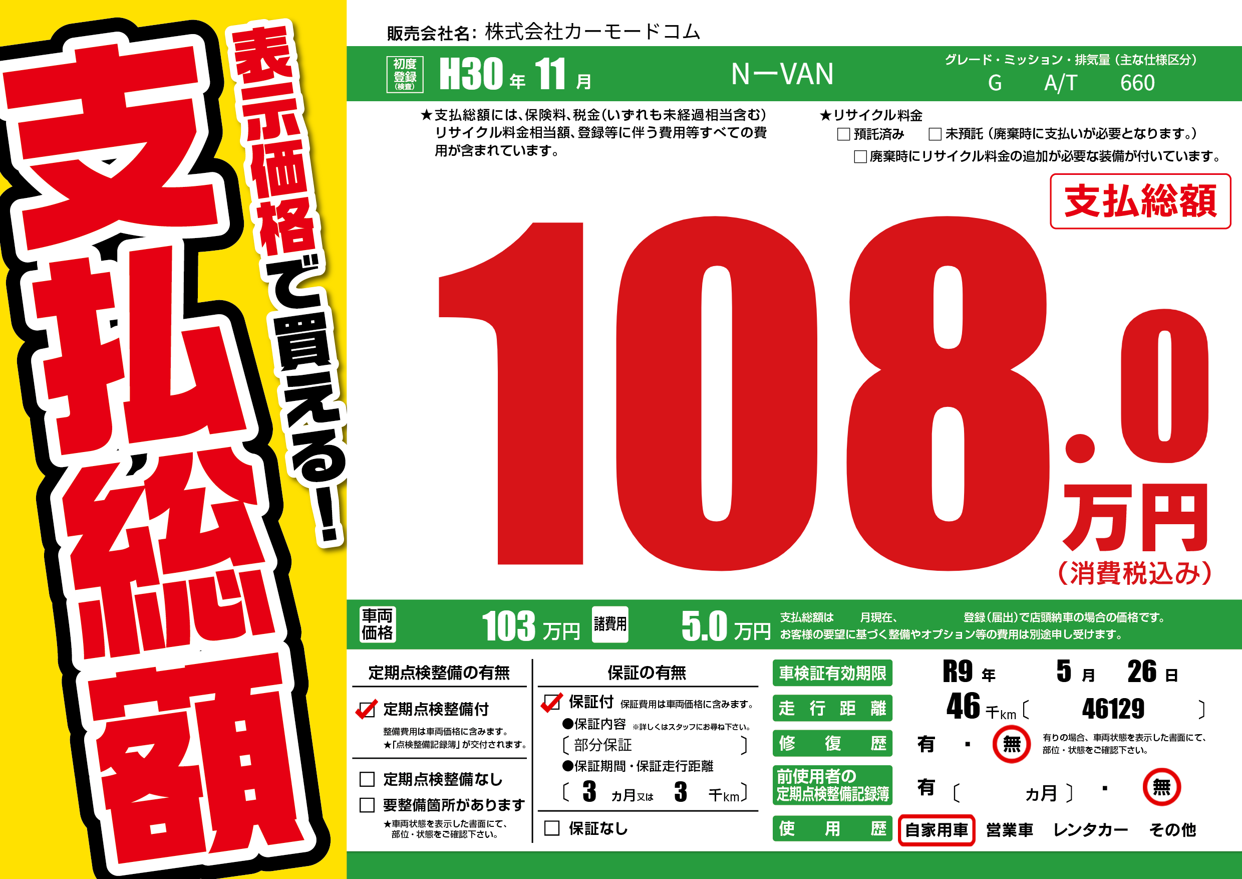 なし | 車検制限 | R9年5月26月 |