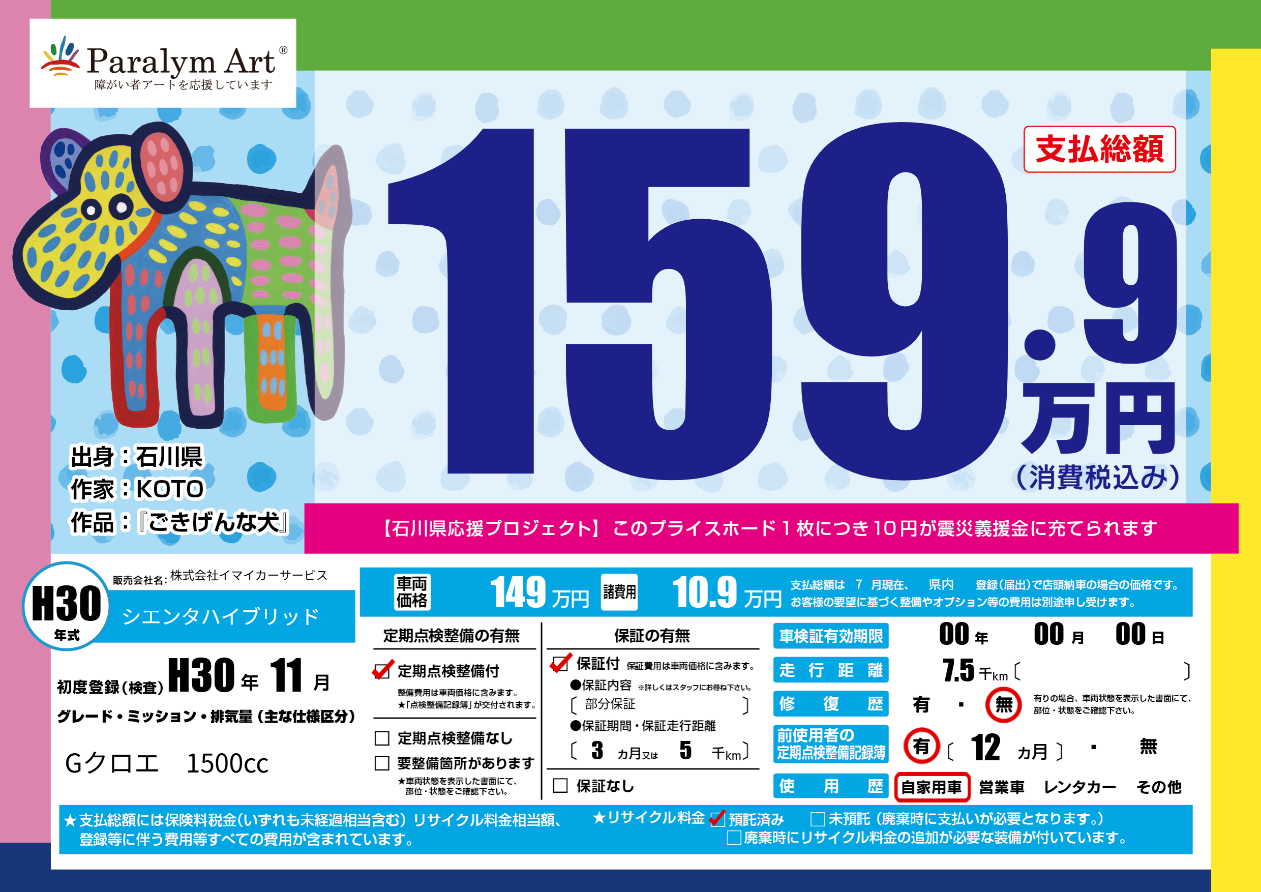 | 車名 | シエンタハイブリッド | グレード ミッション 排気量 |
