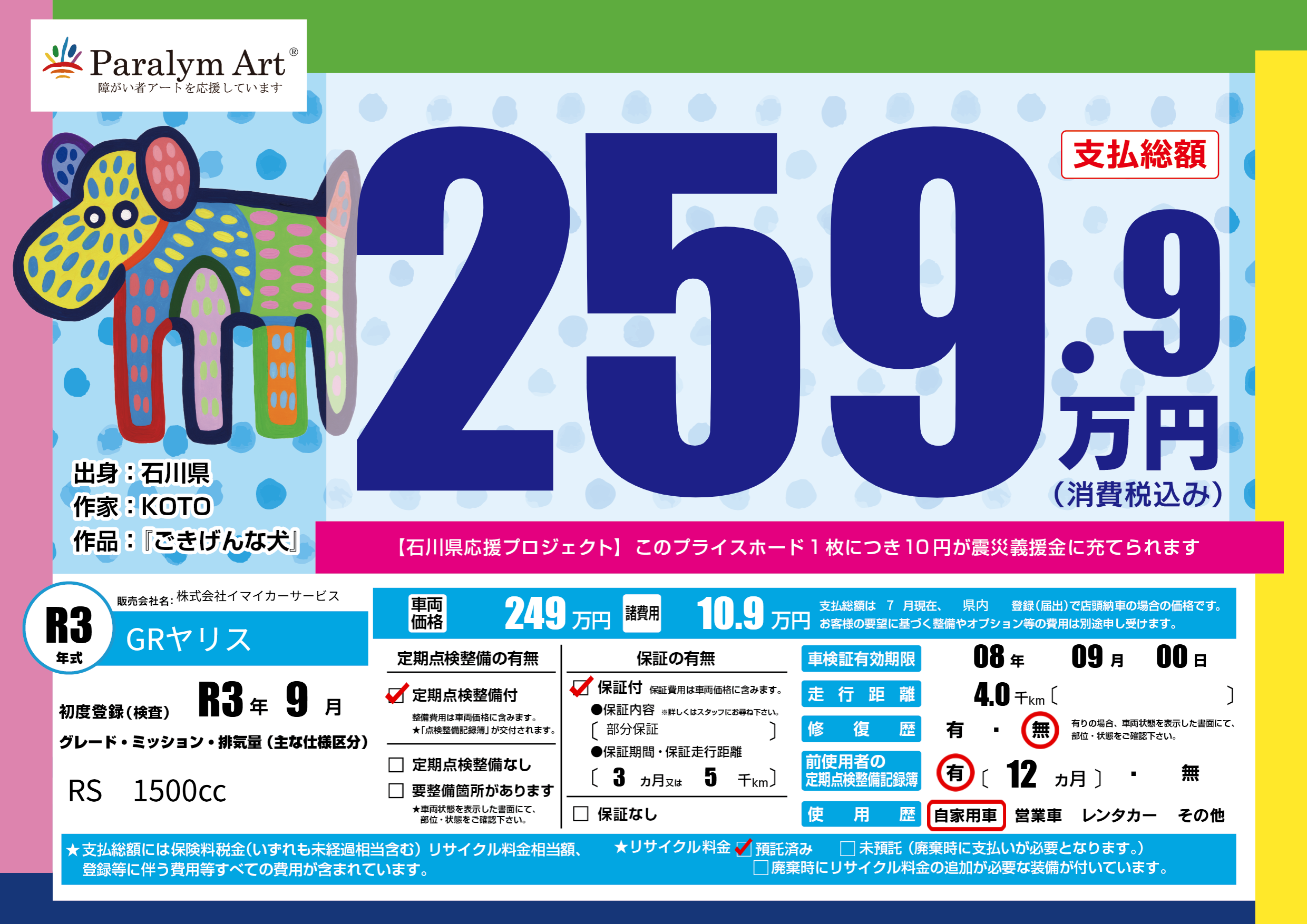 | 走行キロ | 0.4万km | 初年度登録 | R3年9月 |