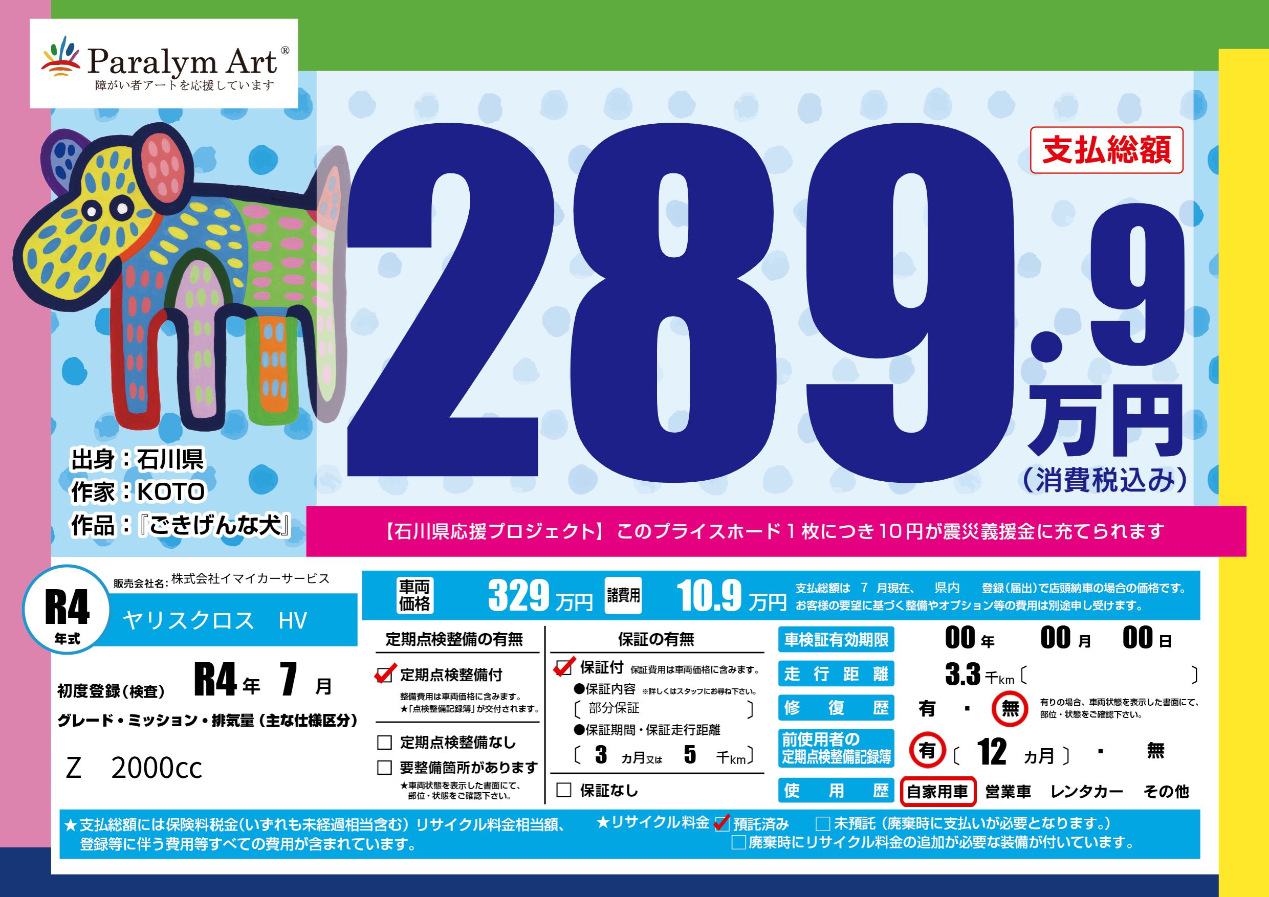 | 走行キロ | 0.3万km | 初年度登録 | R4年7月 |